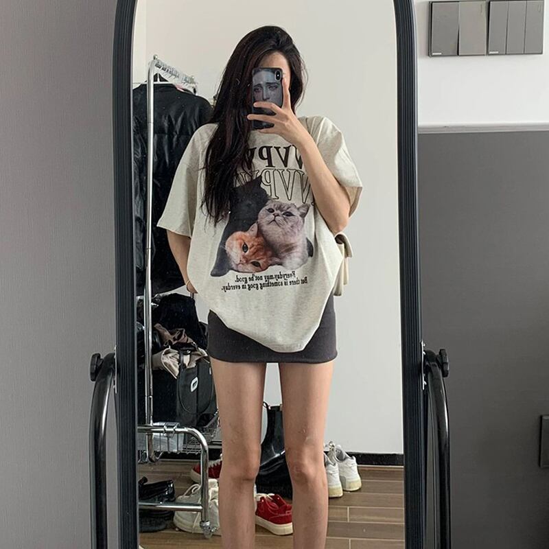 Tシャツプリント半袖コットン Tシャツ夏ルーズトップスクルーネック サマー 夏物 ソリッドカラー