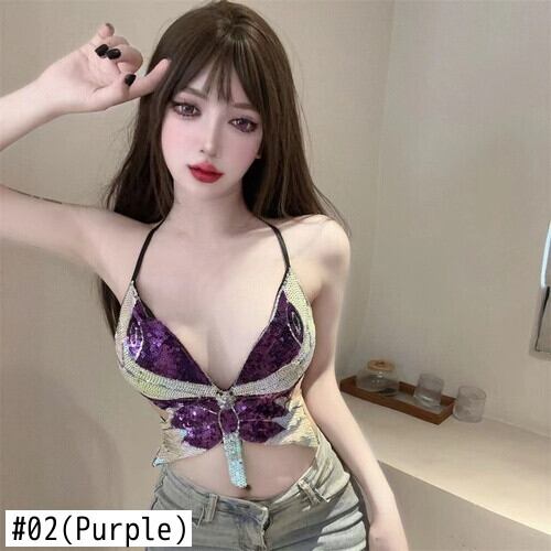 ホットガール純粋セクシースパンコールスリングタンクトップダイヤモンドコントラストカラーパーティーパーマンスキャミソール服 ピュア