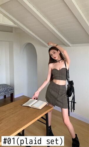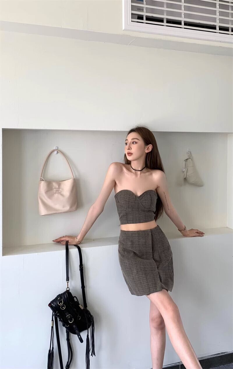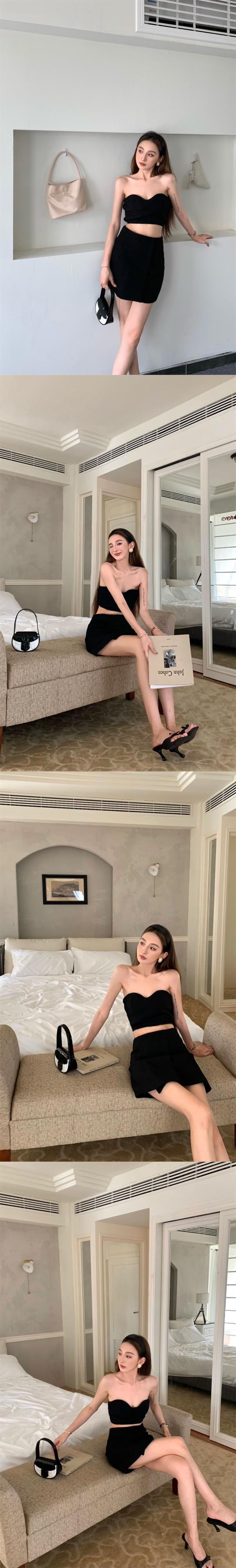 スイートクールホットガールスーツ夏ストラップレスベストショートトップレトロスリムフィットミニスカートツーピースセット服 大人ガーリー スウィート キュート カジュアル サマー 夏物