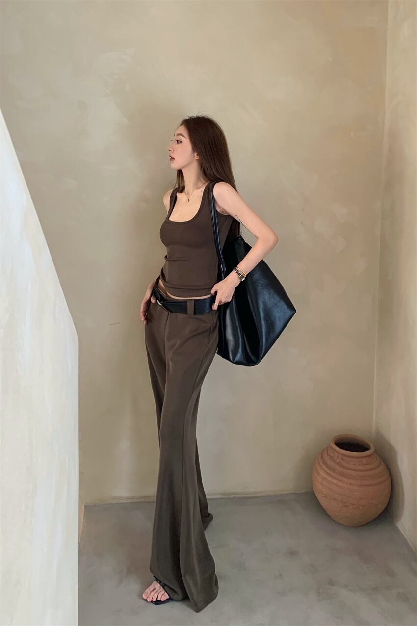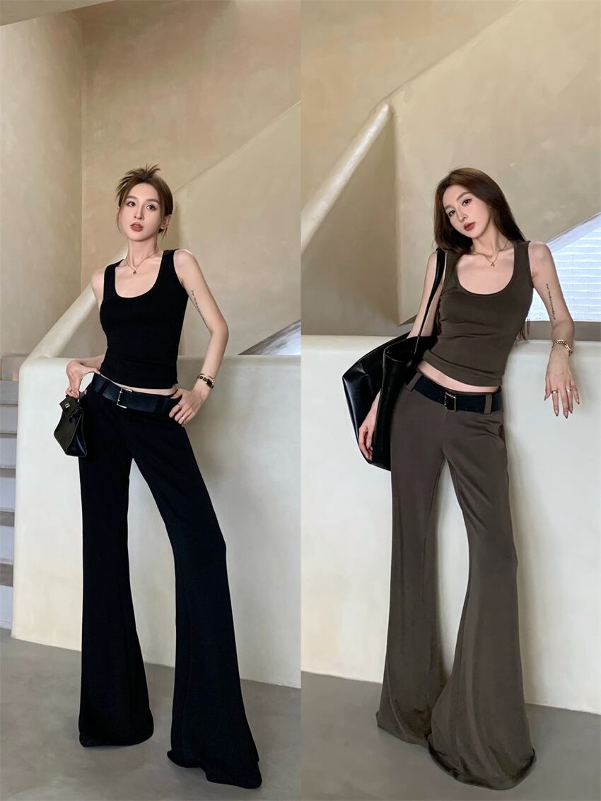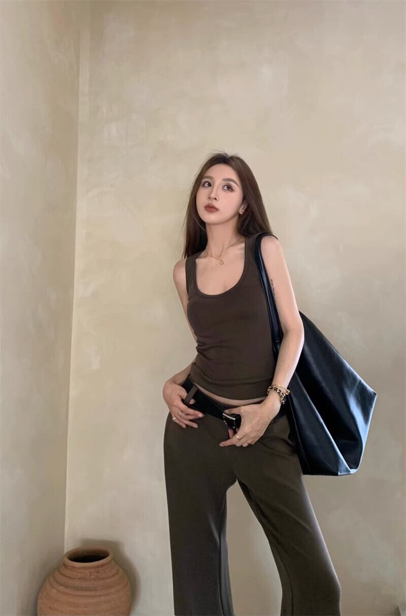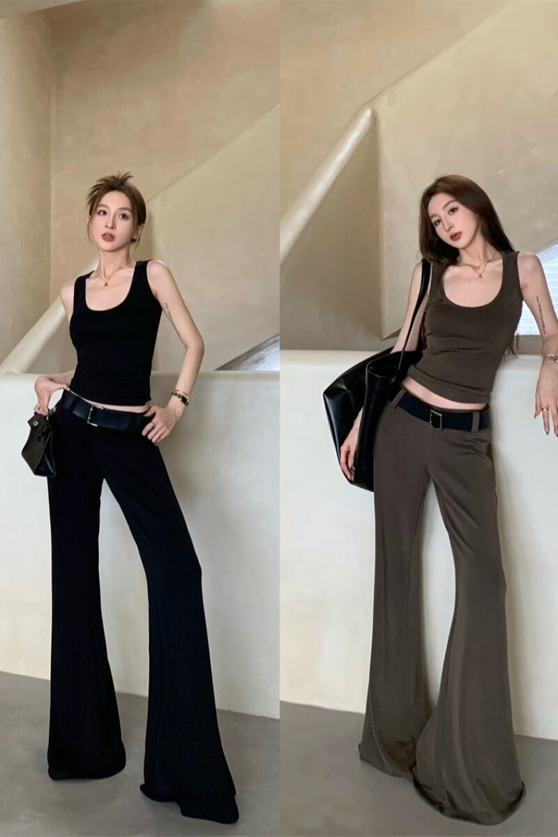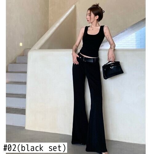 アメリカンホットガールスーツ夏ノースリーブ U ネックスポーツタンクトップフレアパンツ 2 点セット服 サマー 夏物