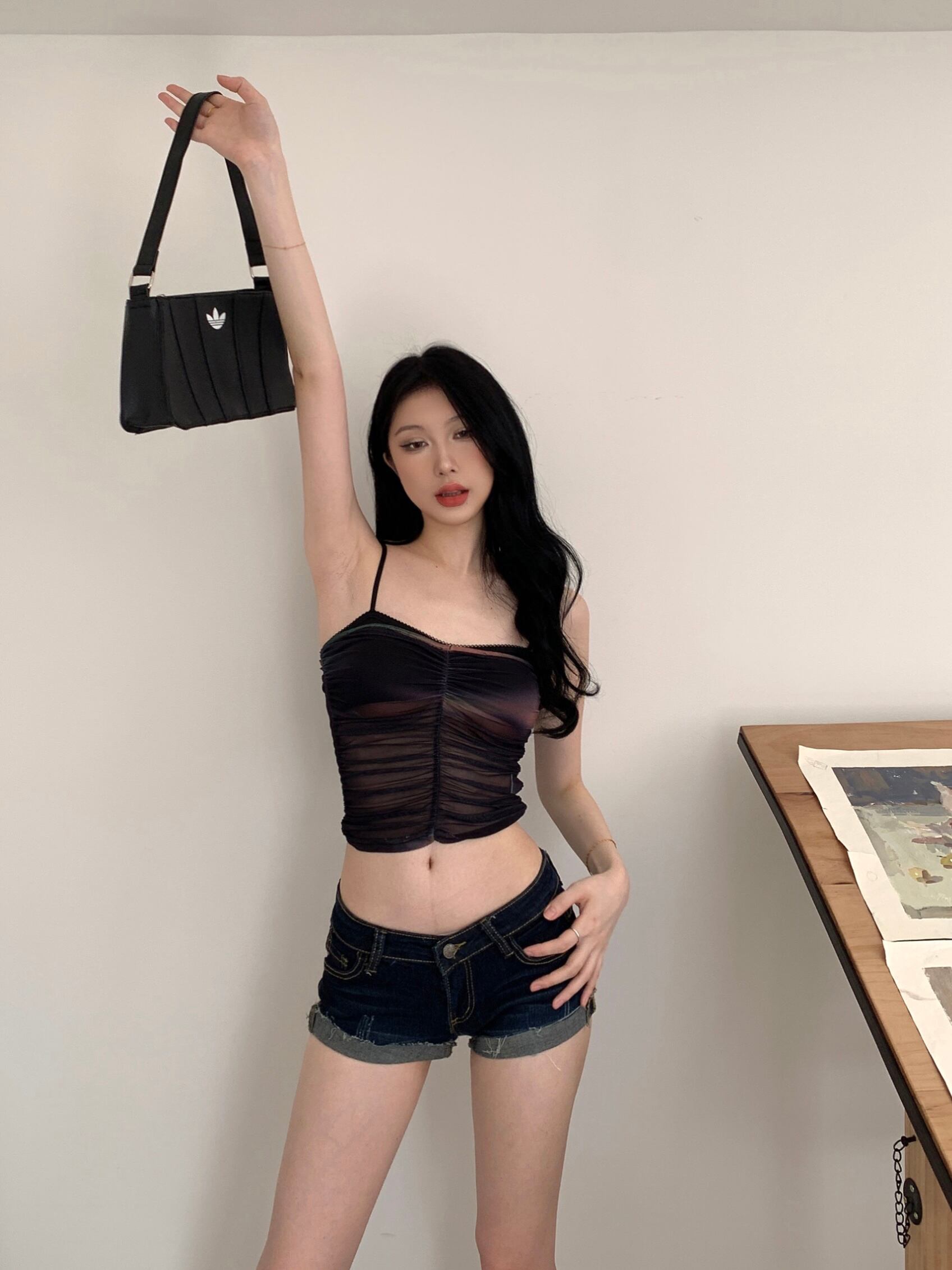ホットガールスーツ夏スリムフィットストレッチキャミソールトップウエストセクシーデニムショーツツーピースセット服 サマー 夏物 ブルマー