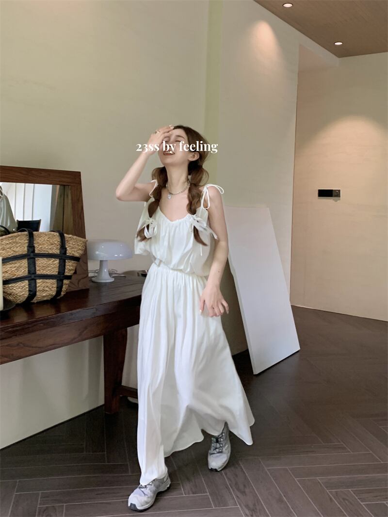 ホットガール純粋セクシースーツ夏スタイルサスペンダータンクトップウエストロングスカートツーピースセット服 サマー 夏物 ピュア