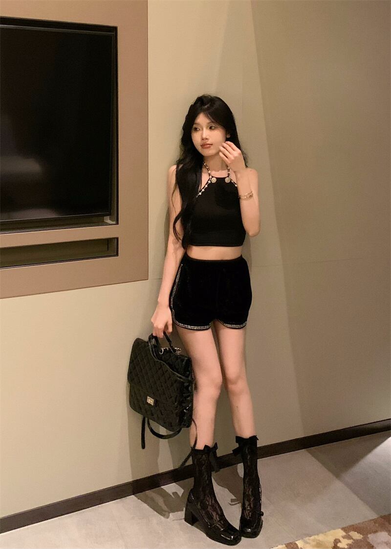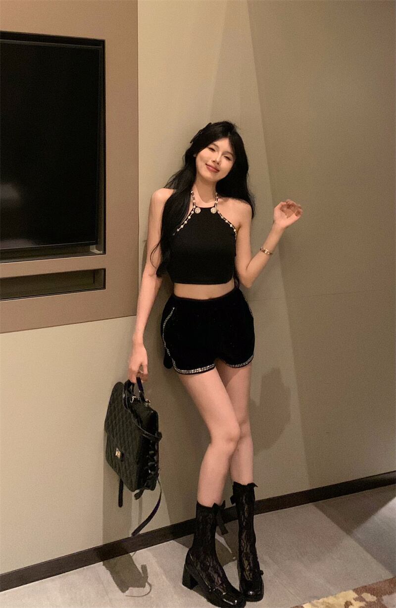 甘いホットガールスーツ夏ラインストーンホルターネックキャミソールトップウエストショーツ 2 点セット服 大人ガーリー スウィート キュート カジュアル サマー 夏物 ブルマー