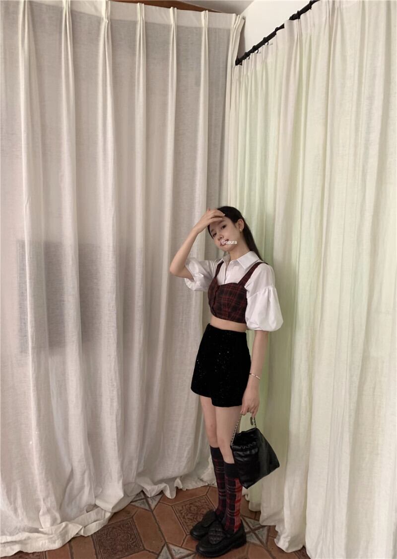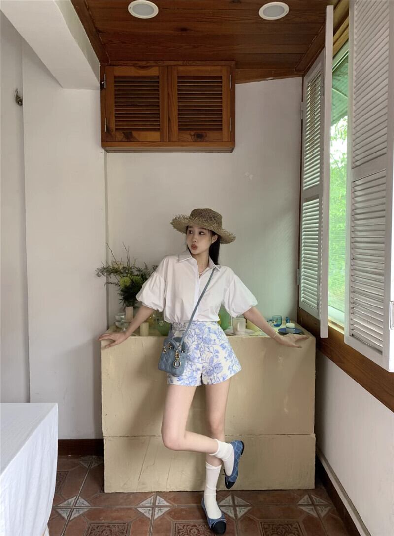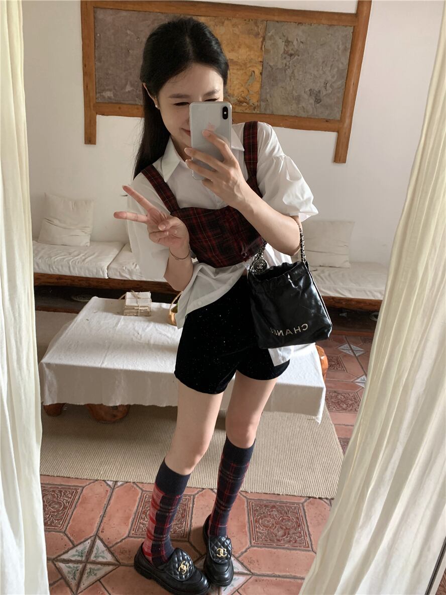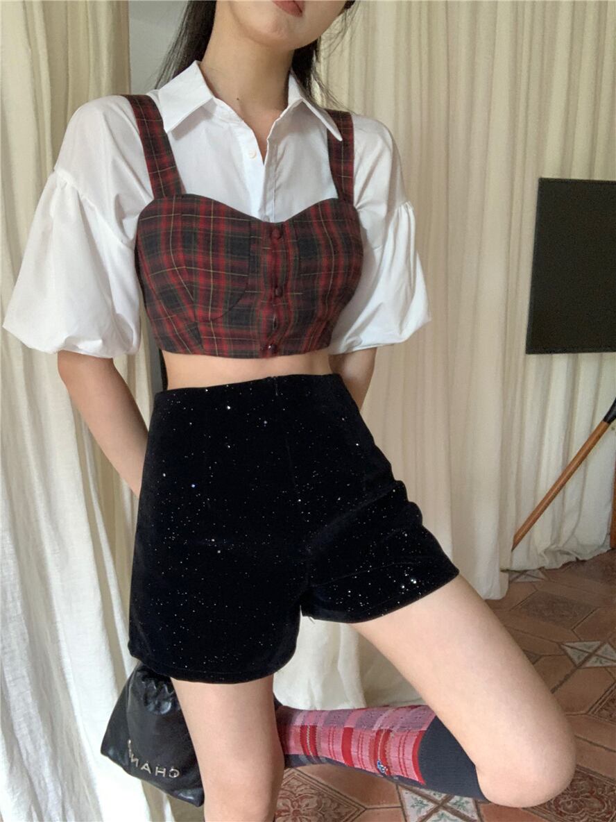 甘いホットガールスーツ夏アメリカンチェック柄キャミソール白シャツトップパンツショーツ 3 点セット服 ホワイト 大人ガーリー スウィート キュート カジュアル サマー 夏物 ブルマー