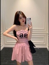 甘いホットガールスーツ夏手紙ホルターネックノースリーブベストセクシー A ラインミニスカート 2 点セット服 大人ガーリー スウィート キュート カジュアル サマー 夏物 Aライン