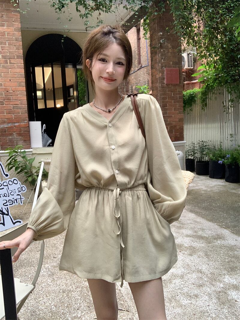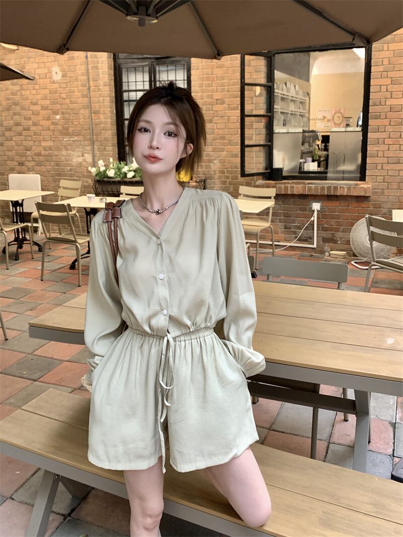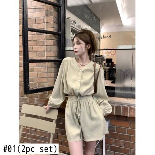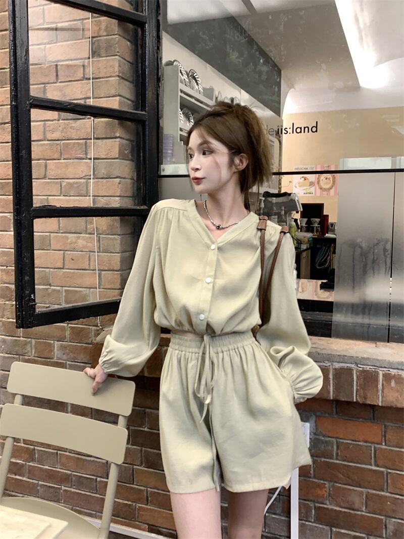 オフィスレディ通勤スーツ夏 V ネック長袖シャツウエストワイドレッグショーツ 2 点セット服 ロング サマー 夏物 ブルマー Vネック ワイドパンツ 会社 学校 通勤や通学にも