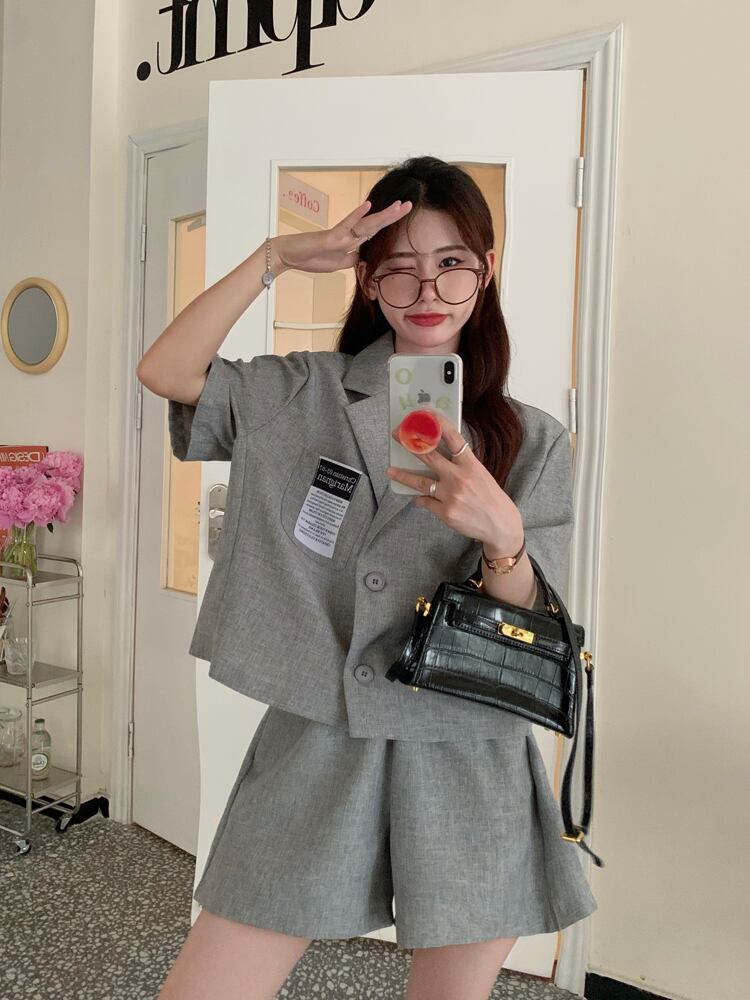 スタイルホットガールスーツ夏半袖ルーズコートウエストショーツ 2 点セット服 サマー 夏物 ブルマー