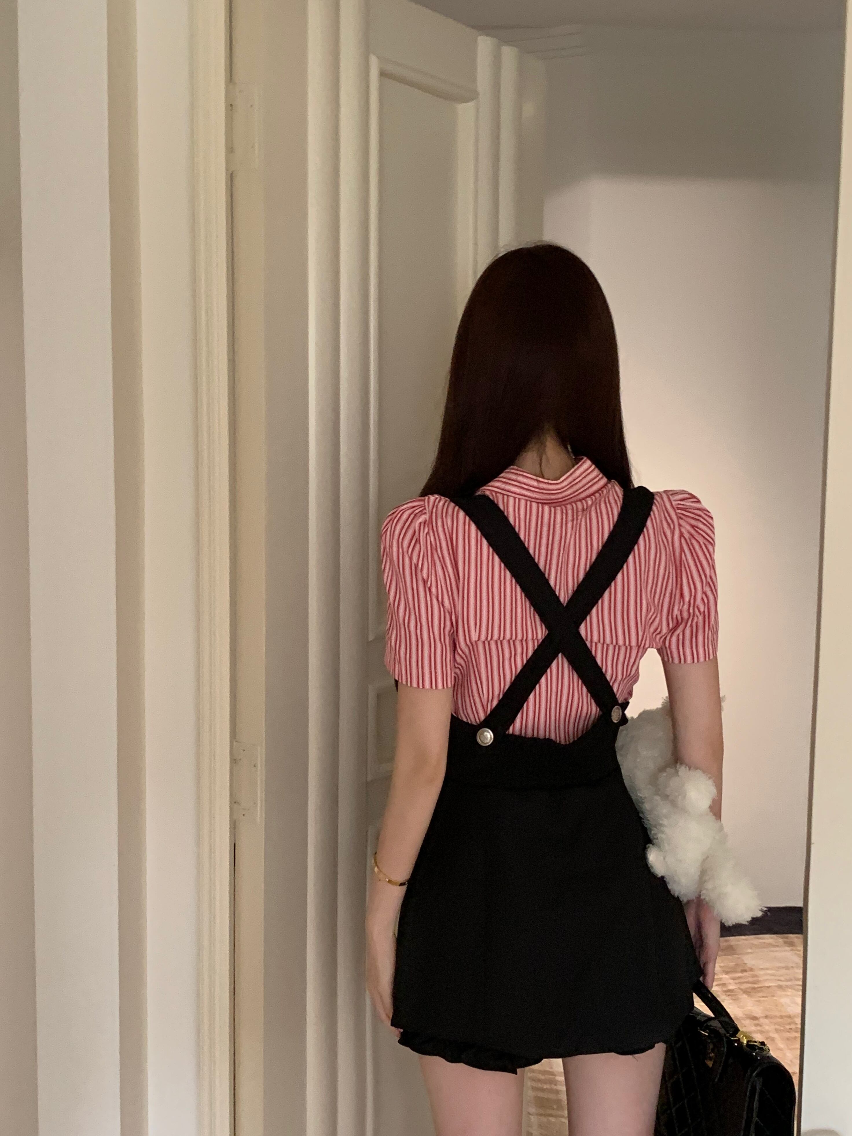 スタイル純粋セクシーホットガールスーツ夏ストライプ半袖シャツスリムフィットストラップドレス 2 点セット服 サマー 夏物 ピュア