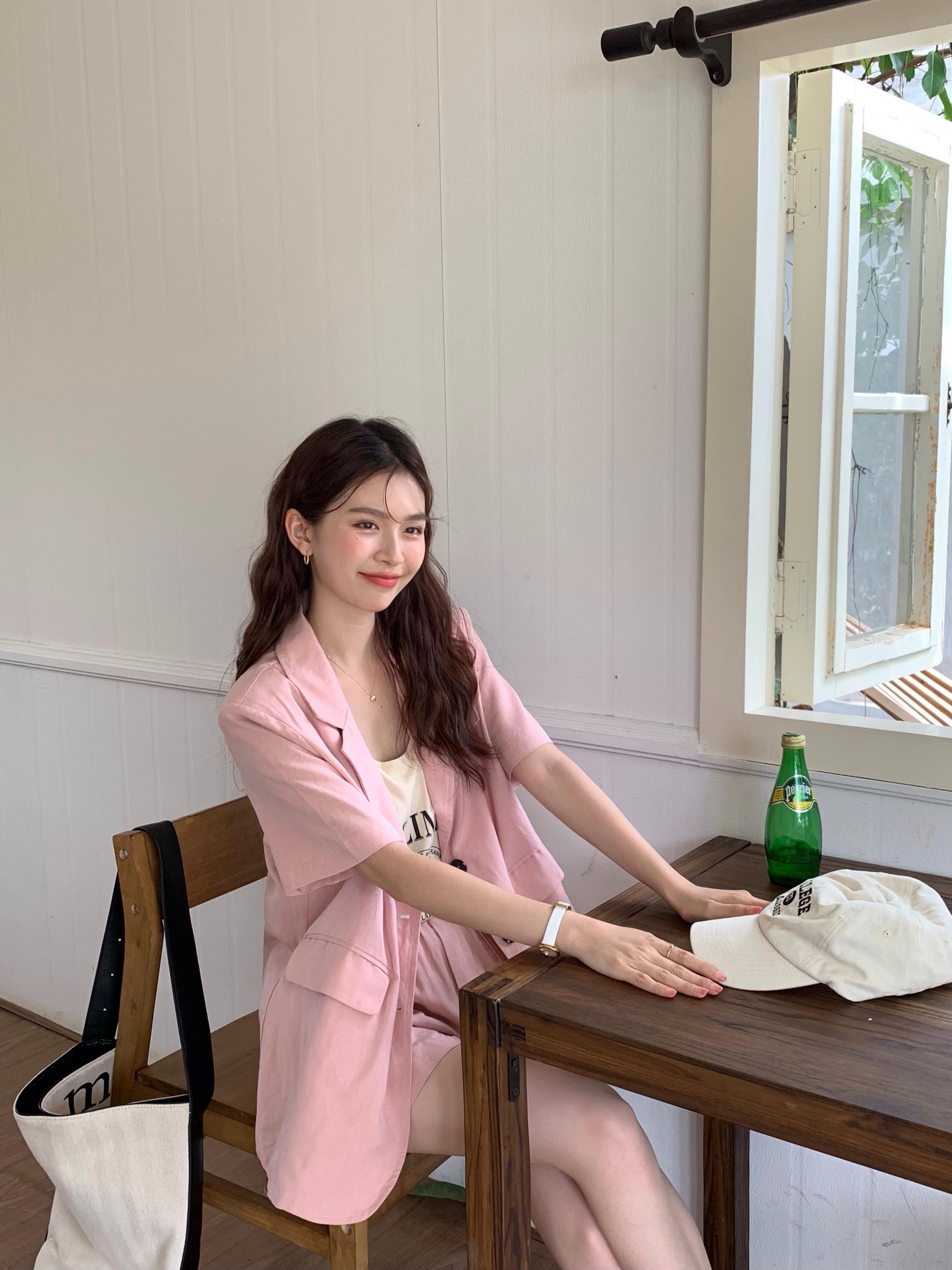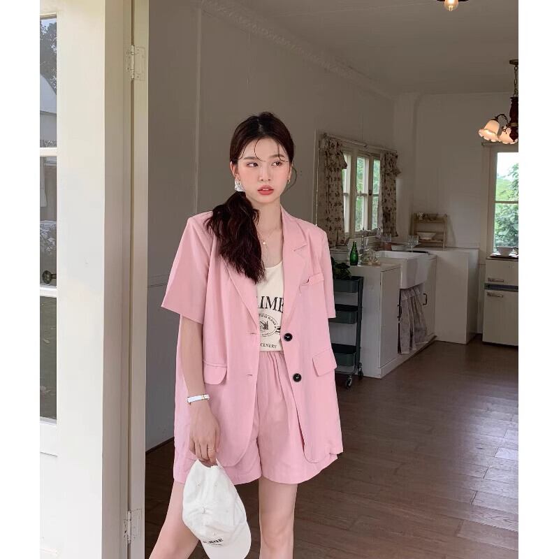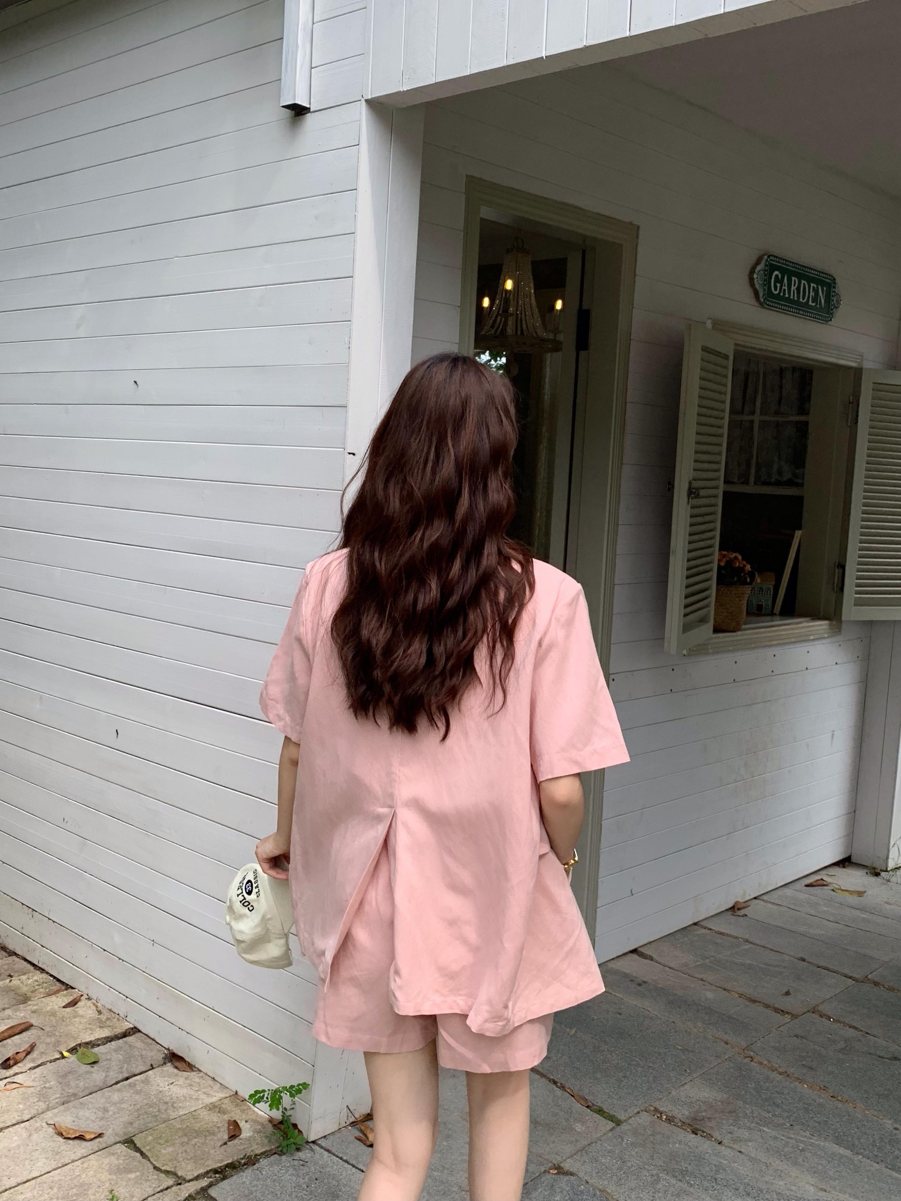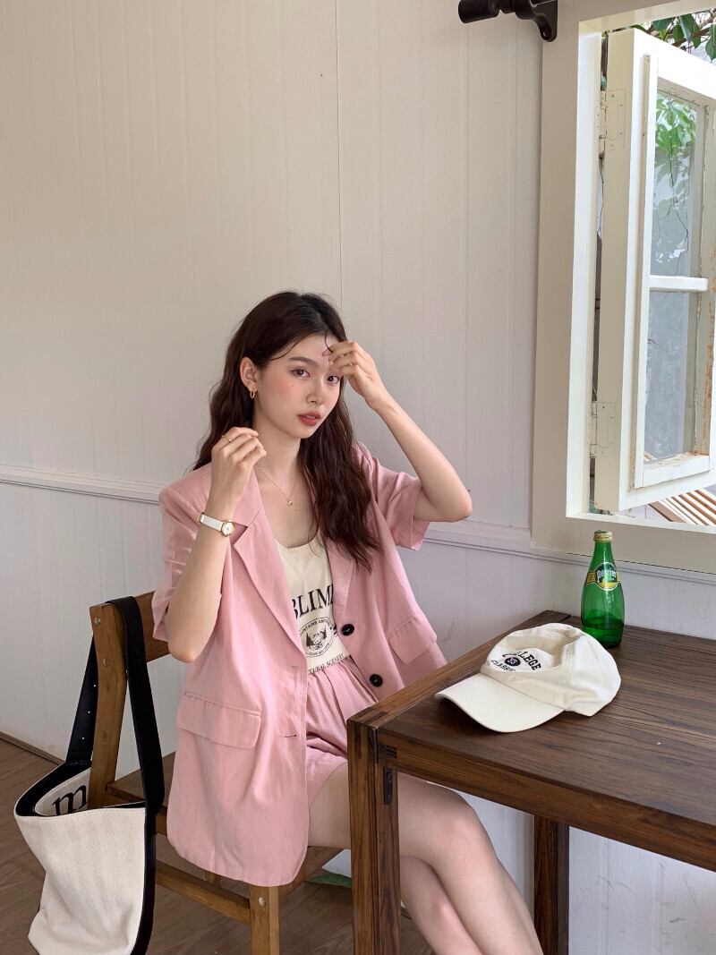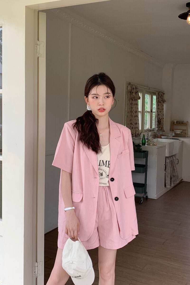 スタイル通勤ピンクスーツ夏半袖ルーズコートウエストショーツ 2 点セットファッション服 サマー 夏物 ブルマー