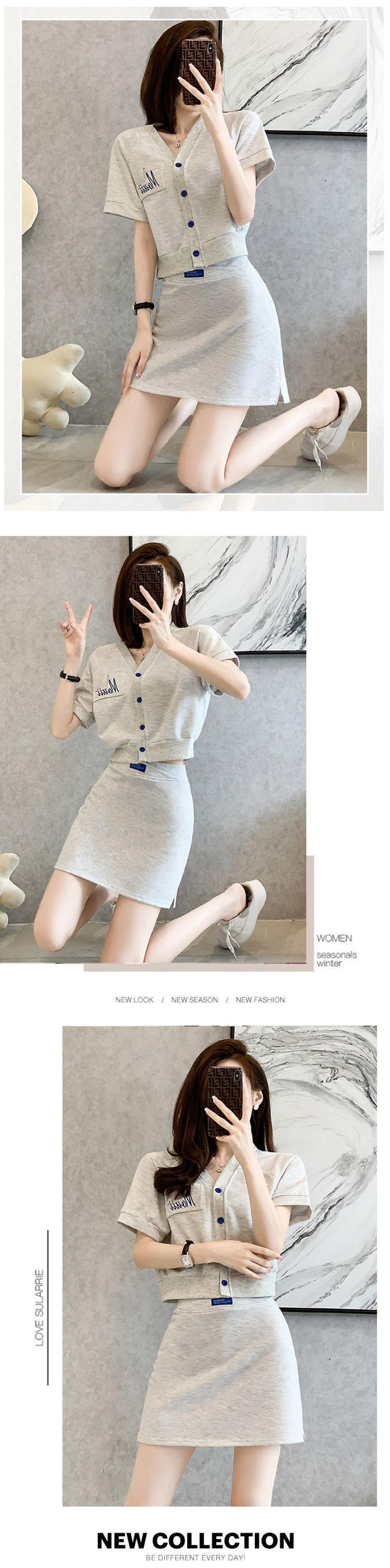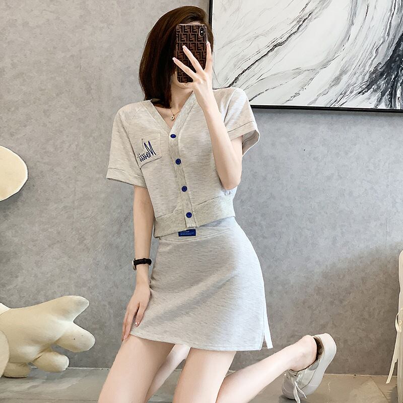 ホットガールスーツ刺繍 V ネックカーディガントップウエスト A ラインミニスカート 2 点セット服 Vネック Aライン