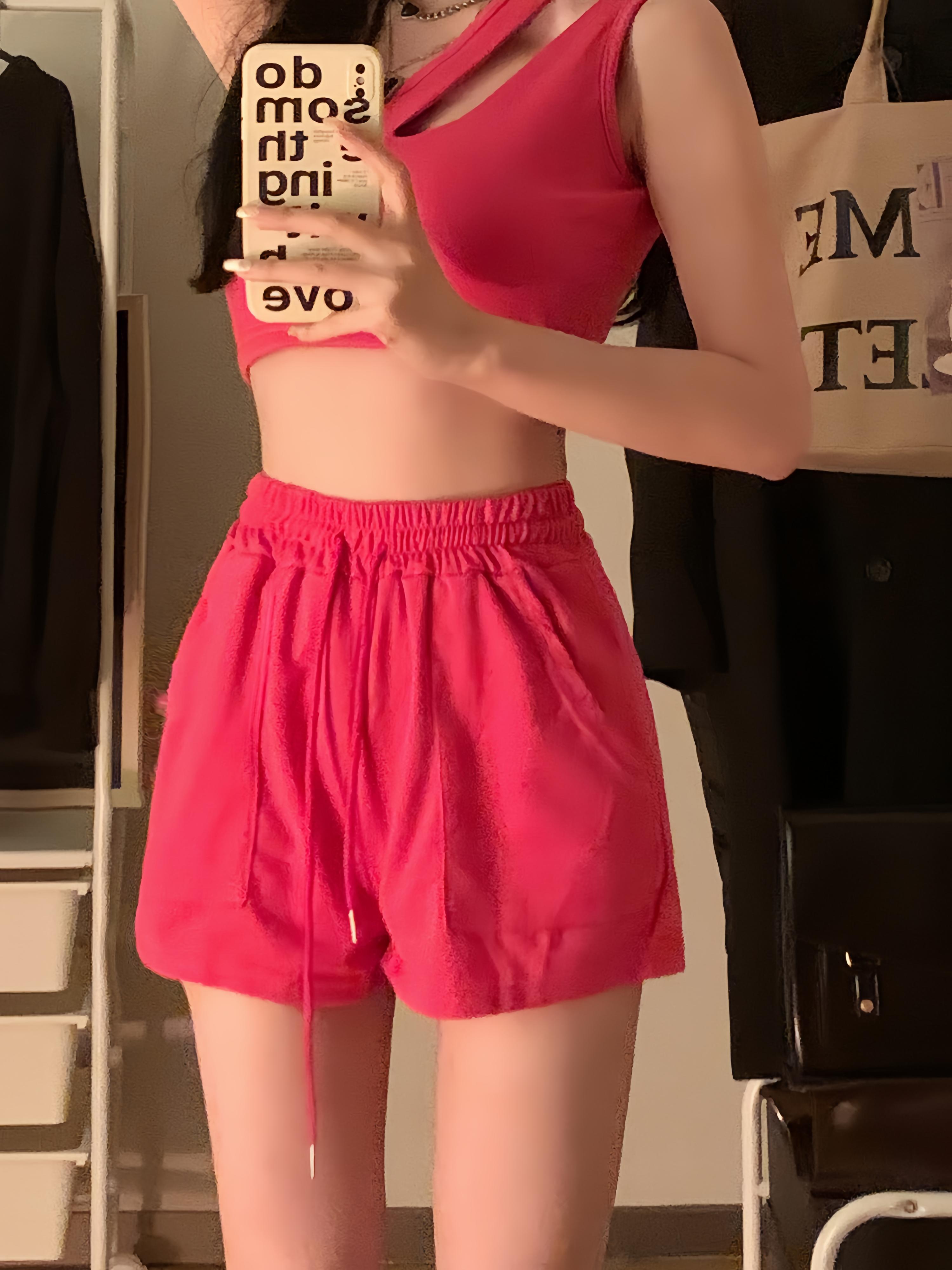 甘いホットガールスーツ夏中空アウトタンクトップ巾着ウエストワイドレッグショーツ 2 点セット服 大人ガーリー スウィート キュート カジュアル サマー 夏物 ブルマー ワイドパンツ