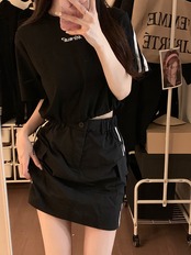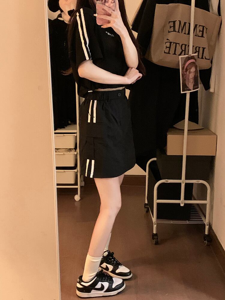 ホットガールスーツ夏巾着半袖 Tシャツウエストショートスカート 2 点セット服 サマー 夏物