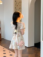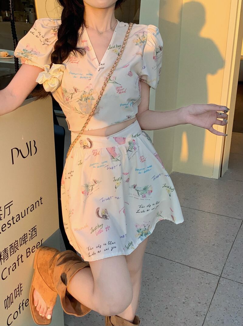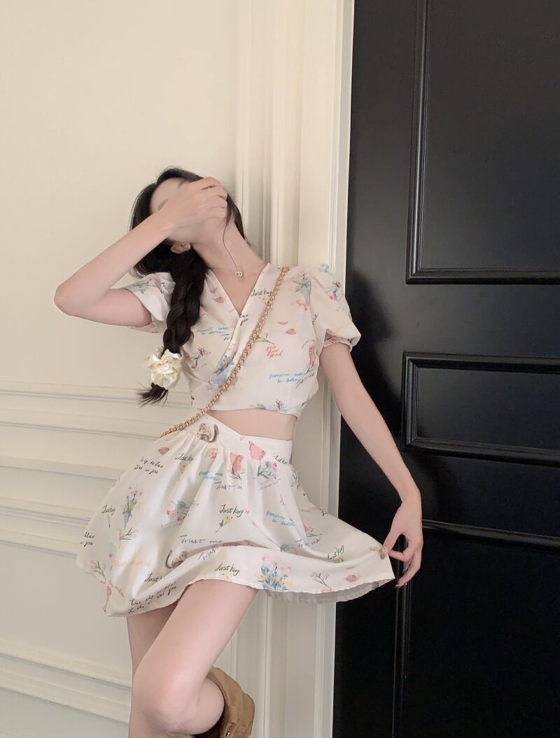 スイートガールスーツ夏花柄半袖スリムフィットトップウエストミニスカートツーピースセット服 大人ガーリー スウィート キュート カジュアル サマー 夏物