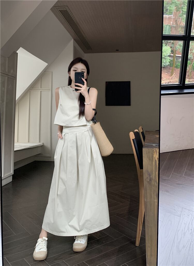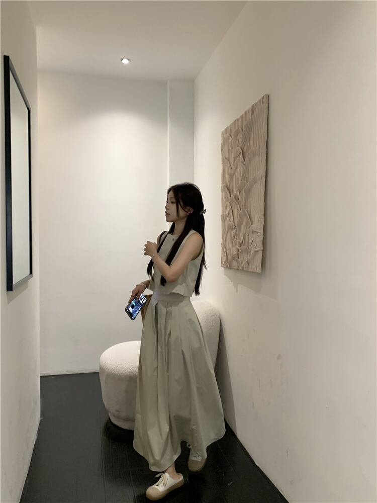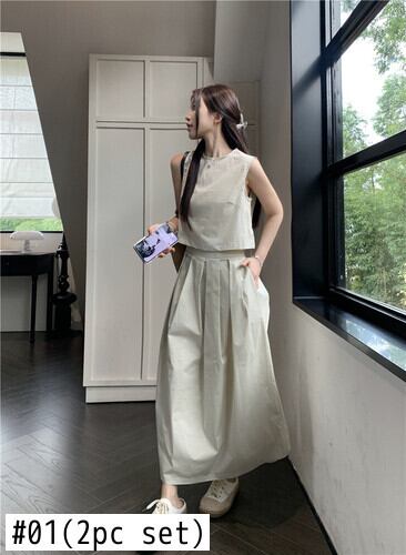 OL 通勤スーツ レディース 夏 ノースリーブ タンクトップ ウエストロングスカート 2点セット 服 サマー 夏物 会社 学校 通勤や通学にも