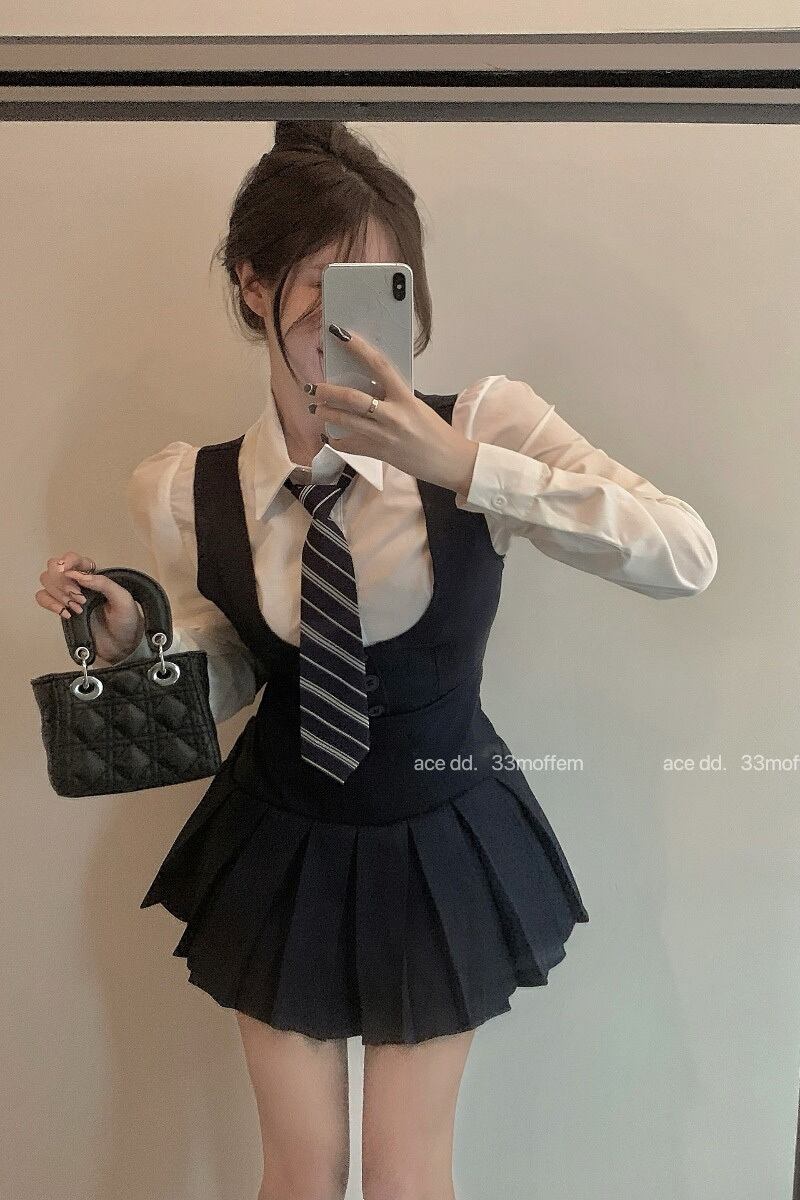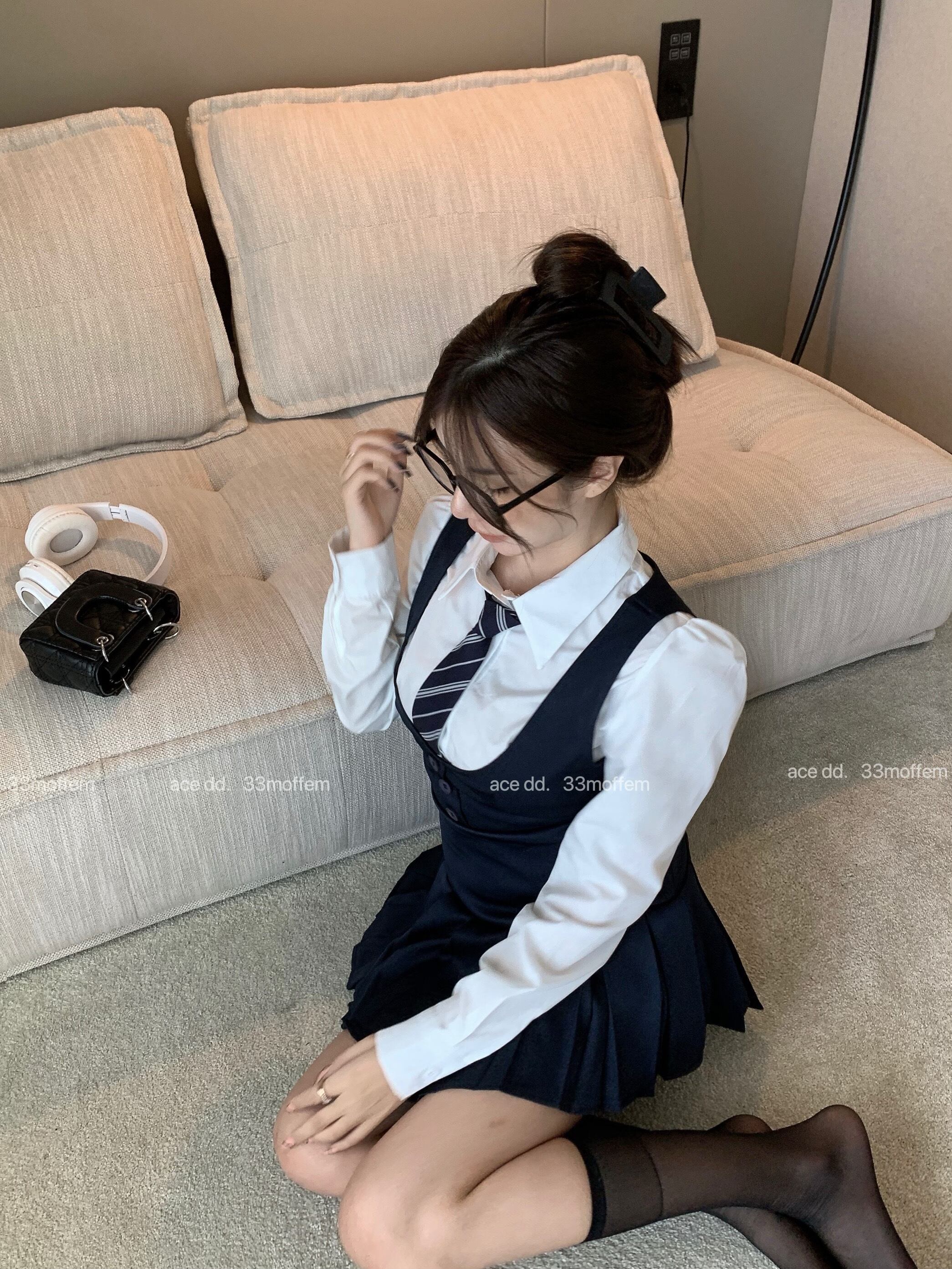 スタイルスーツ白ポロカラーシャツ春と夏ショートサスペンダードレスツーピースセット服 ホワイト スプリング 春物 サマー 夏物