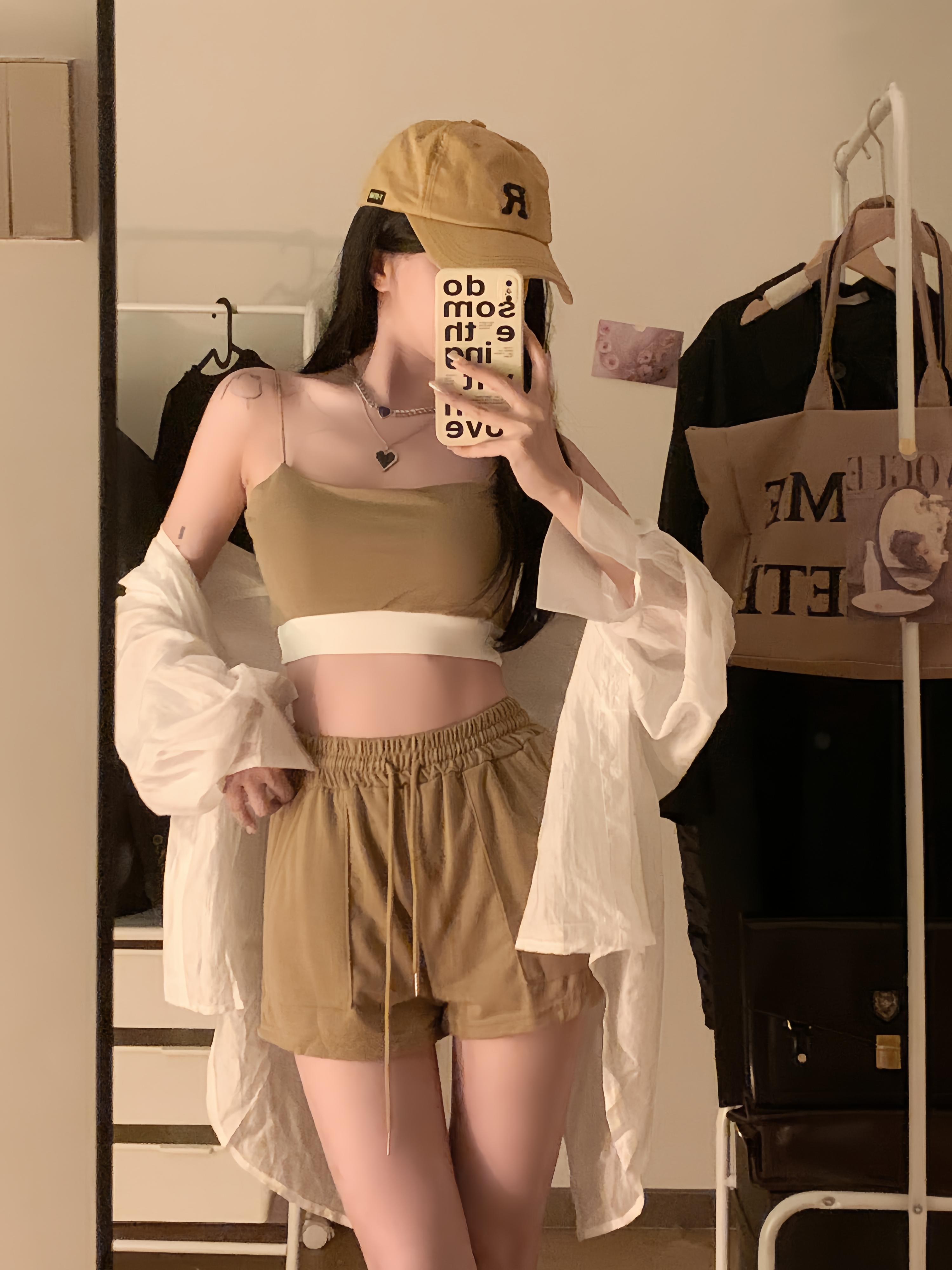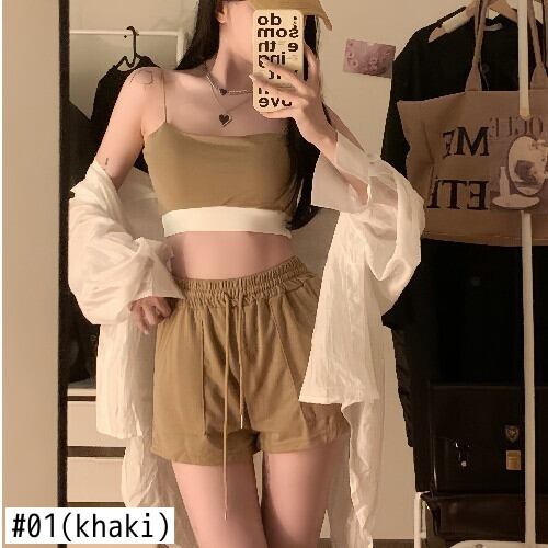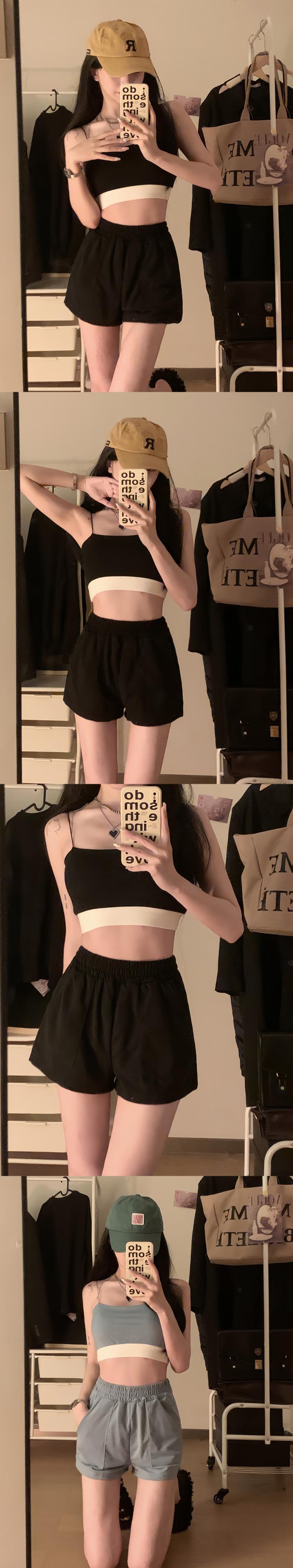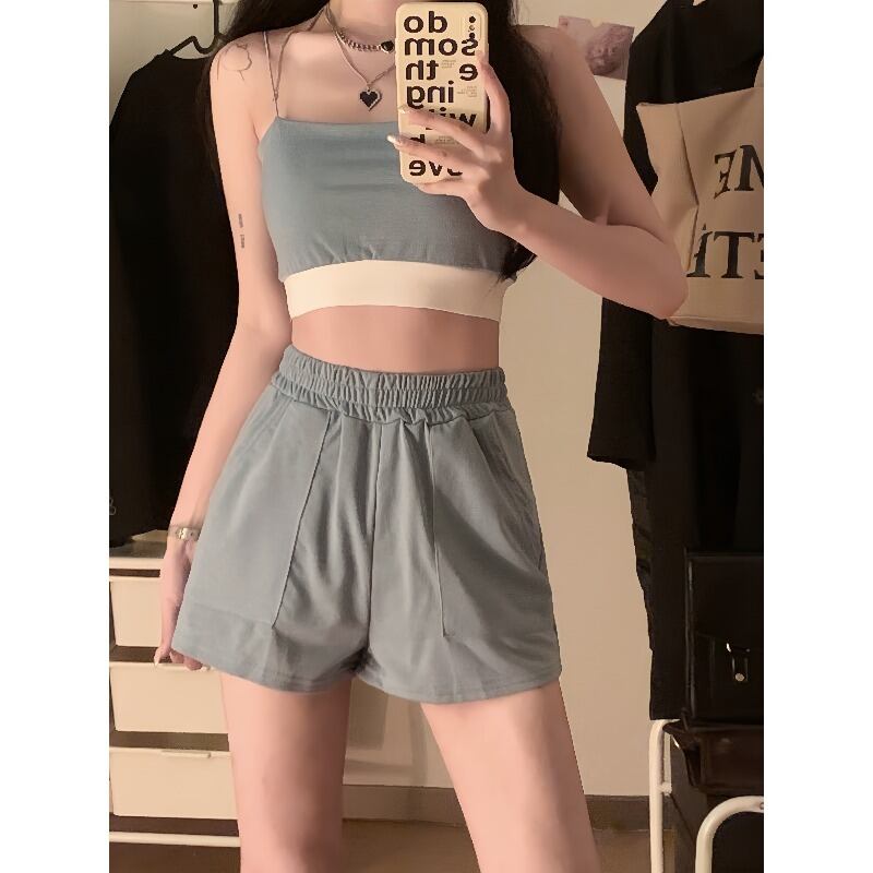 ホットガールスーツ夏スリムフィットキャミソールトップ弾性ウエストワイドレッグショーツ 2 点セット服 エラスティック 伸縮 サマー 夏物 ブルマー ワイドパンツ