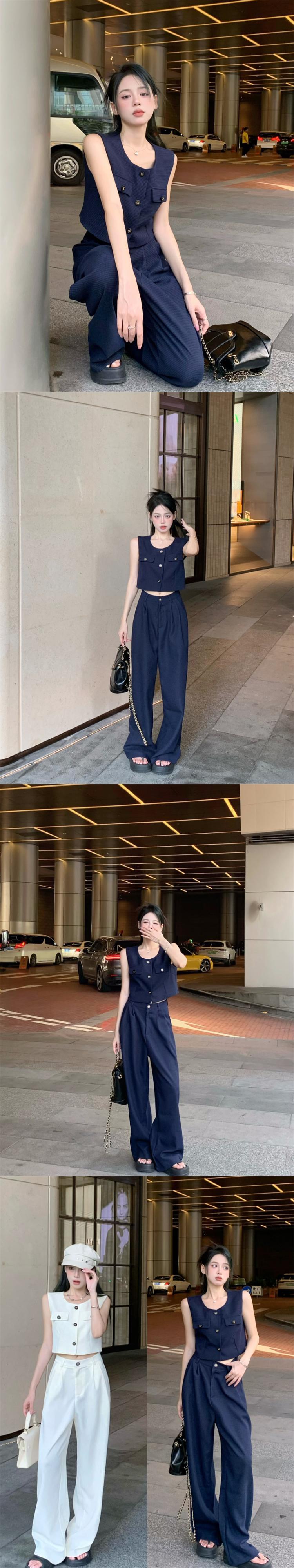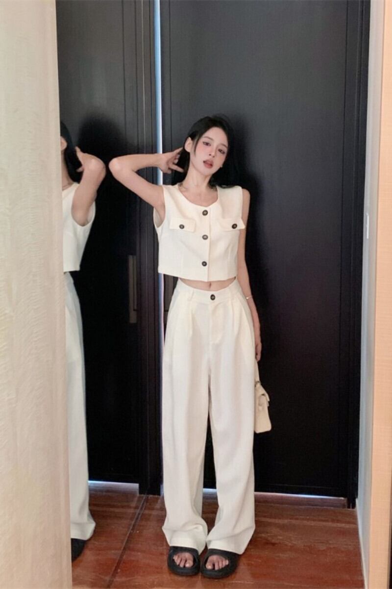 OL 通勤スーツ レディース 夏 ノースリーブ タンクトップ ベスト ウエスト ワイドレッグ パンツ 2点セット 服 サマー 夏物 ワイドパンツ 会社 学校 通勤や通学にも