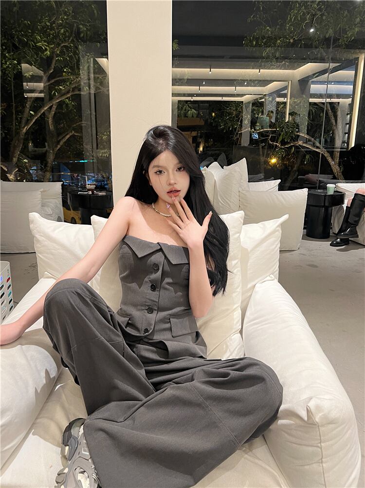 スイートホットガールスーツ夏スリムフィットストラップレスショートトップ多用途ロングパンツ 2 点セット服 大人ガーリー スウィート キュート カジュアル サマー 夏物