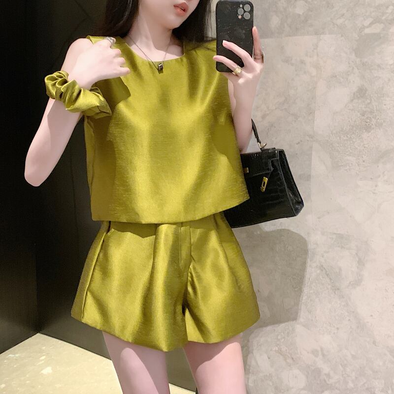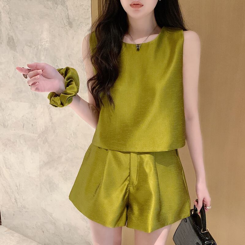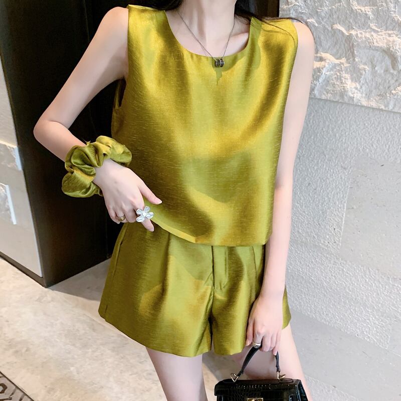 スイートクールガールスーツ レディース 夏 ルーズ ノースリーブ タンクトップ ウエスト ワイドレッグ ショーツ 2点セット 服 大人ガーリー スウィート キュート カジュアル サマー 夏物 ブルマー ワイドパンツ