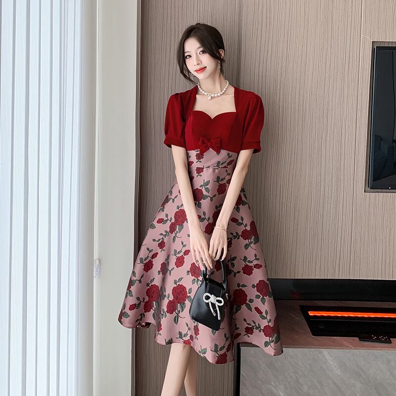 ブライダルドレス サマースリムフィットドレス スクエアネック スリムドレス デイリーエンゲージメントドレス 夏物 スクウェア