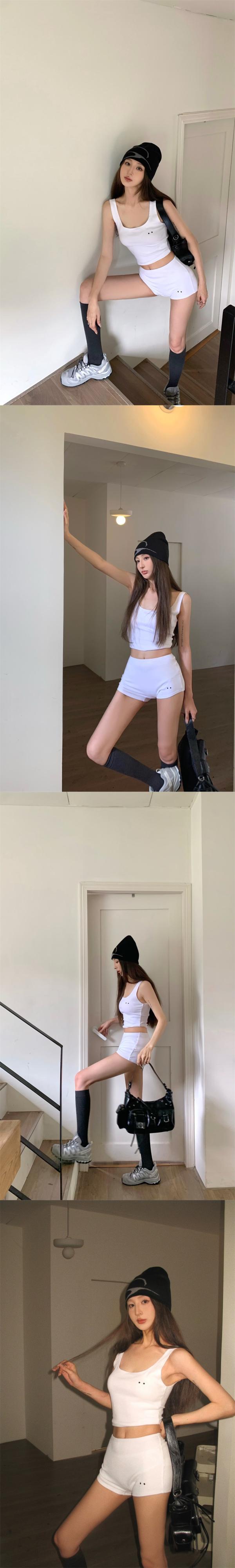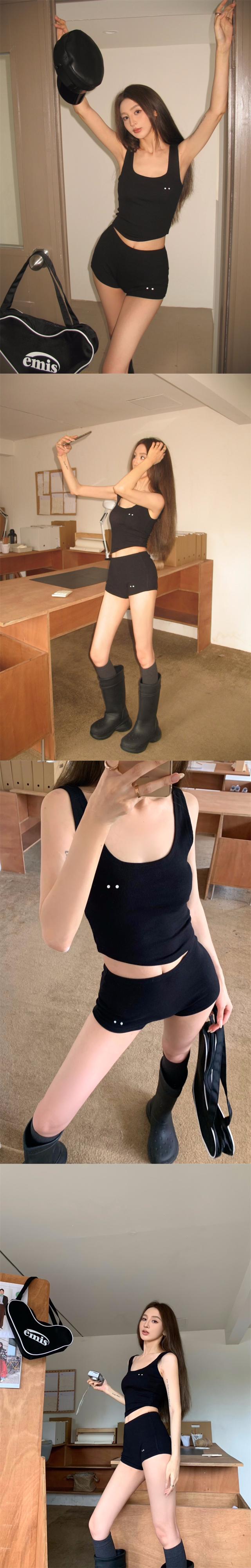 アメリカンレトロホットガールズスポーツスーツ夏キャミソールタイトウエストショーツ黒ツーピースセット服 ブラック サマー 夏物 ブルマー