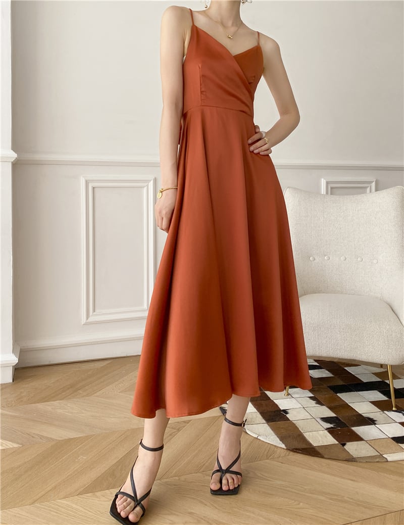 甘いホットガールホリデービーチドレス夏サテンセクシー背中開いたレトロ大きスイングロングストラップドレス服 大人ガーリー スウィート キュート カジュアル サマー 夏物 長めのストラップ