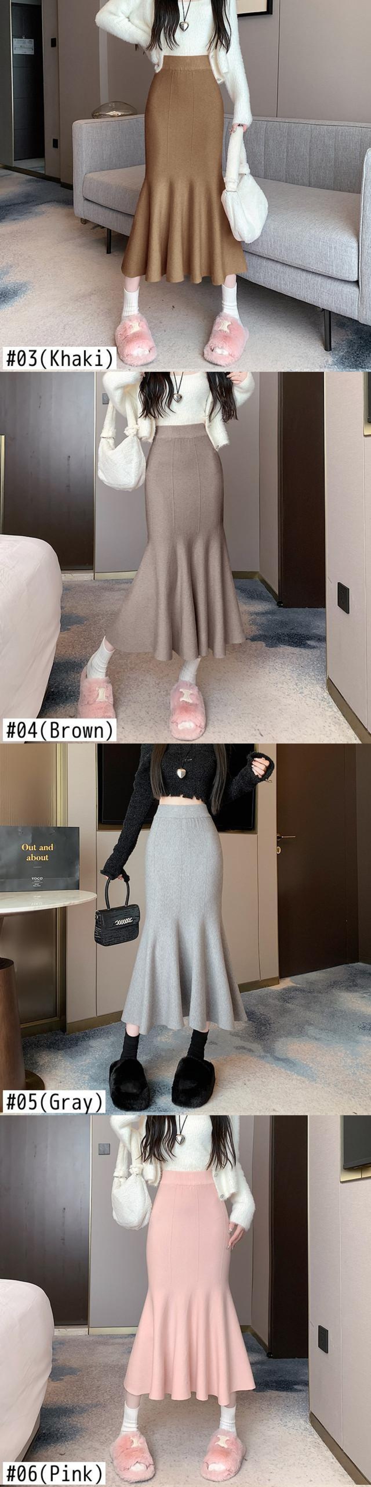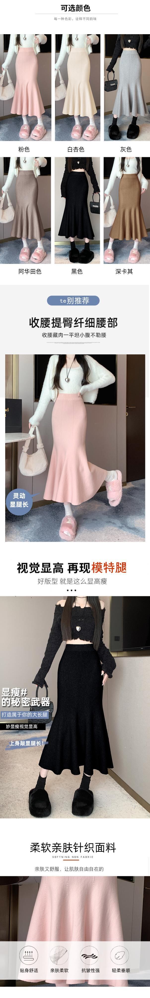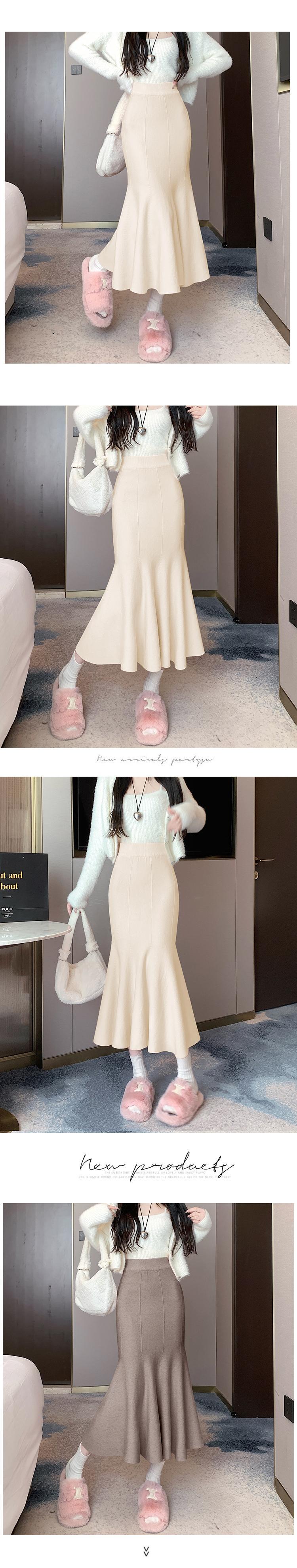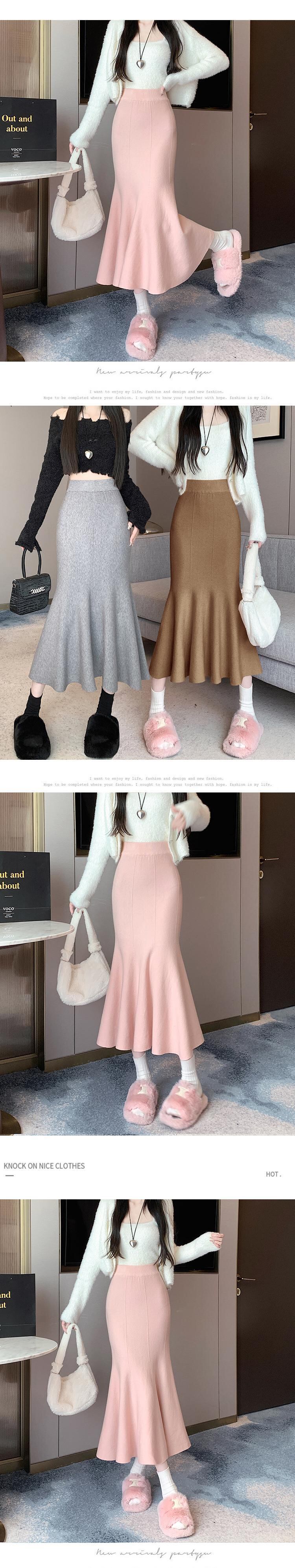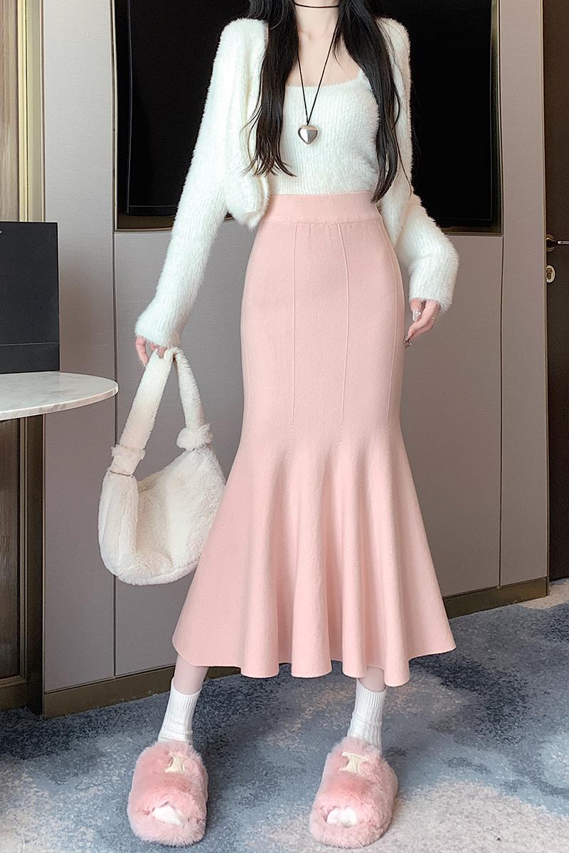 ニットスカート春と秋スタイルソリッドカラースリムフィットミッドレングスラップヒップマーメイドスカート服 スプリング 春物 オータム 秋物