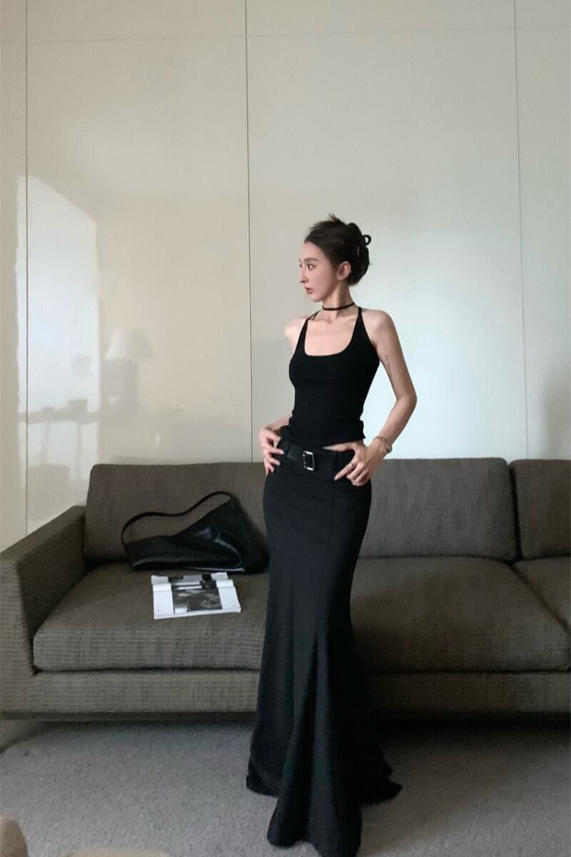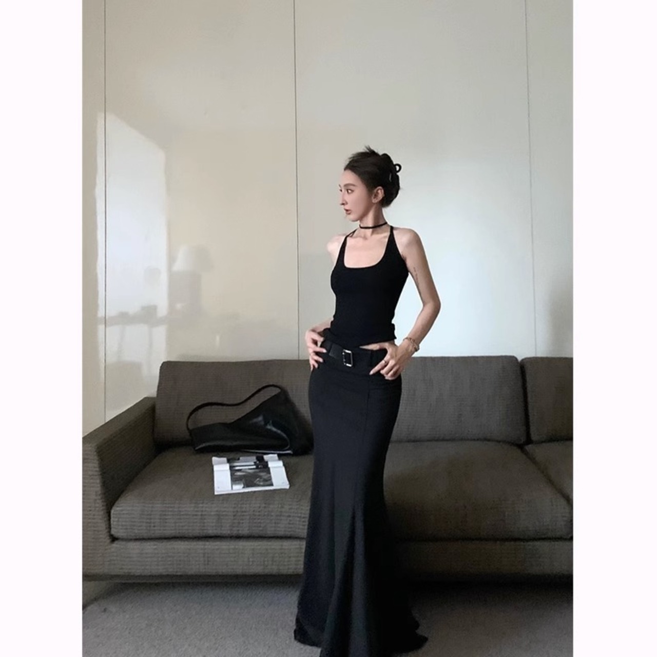 セクシーホットガールスーツ夏スリムフィットキャミソールウエストロングマーメイドスカートツーピースセット服 サマー 夏物