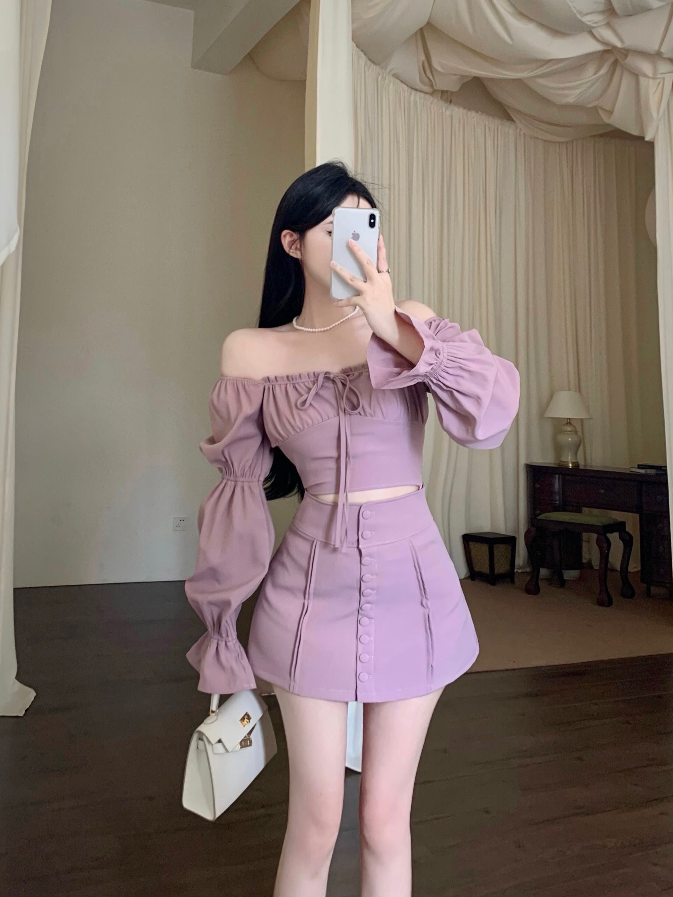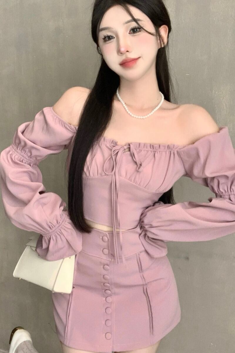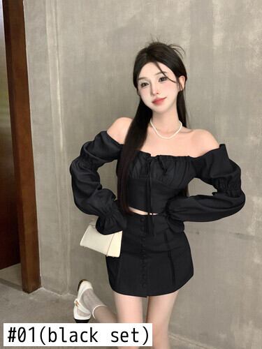 ピュアセクシースタイルスーツ レディース 秋 スラッシュネック オフショルダー フレアスリーブ シングルブレスト Aラインスカート 2点セット オータム 秋物