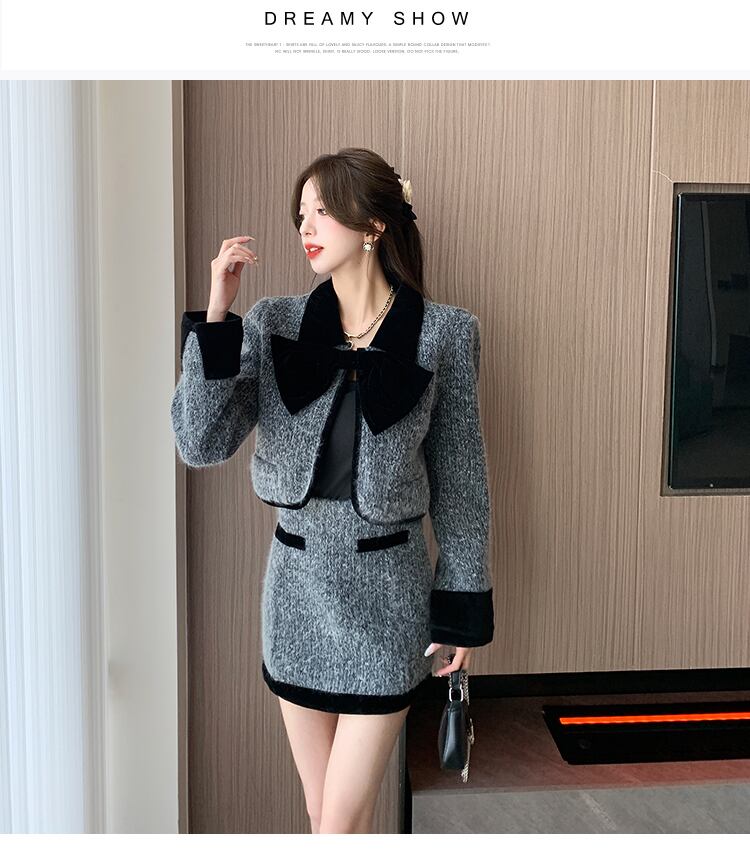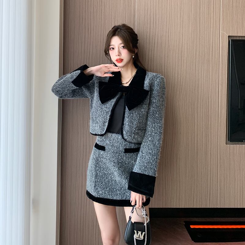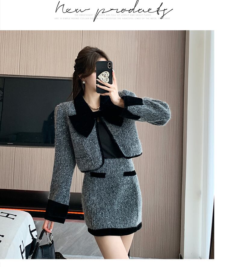 甘いホットガールスーツ秋長袖ショートコートウエスト A ラインミニスカート 2 点セット服 ロング 大人ガーリー スウィート キュート カジュアル オータム 秋物 Aライン