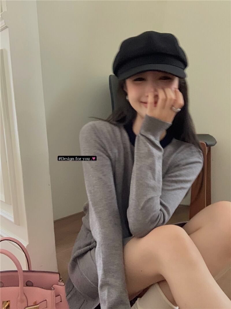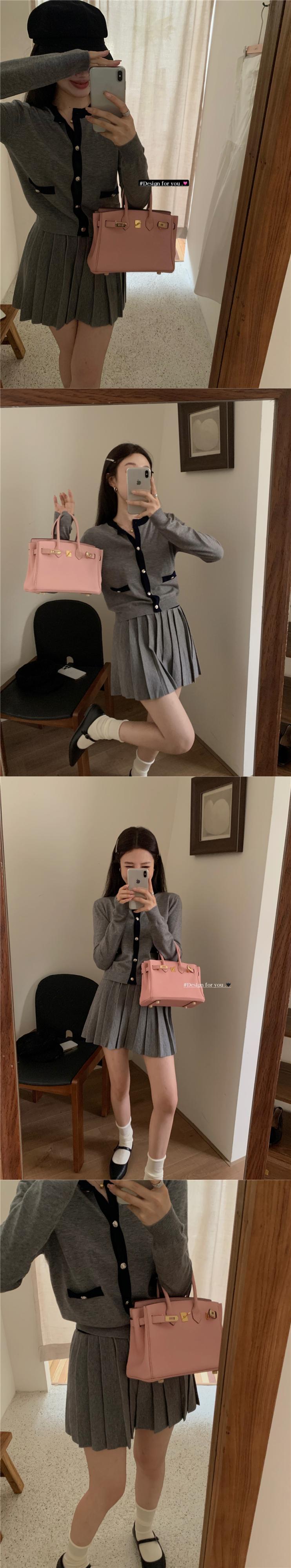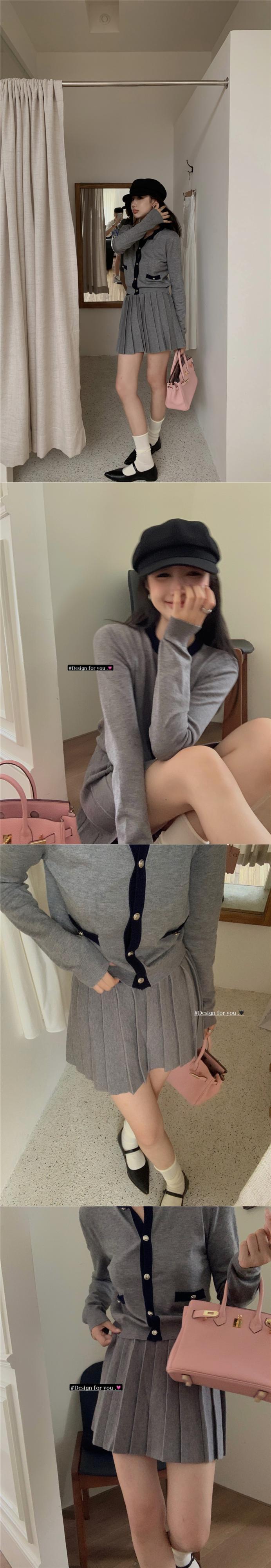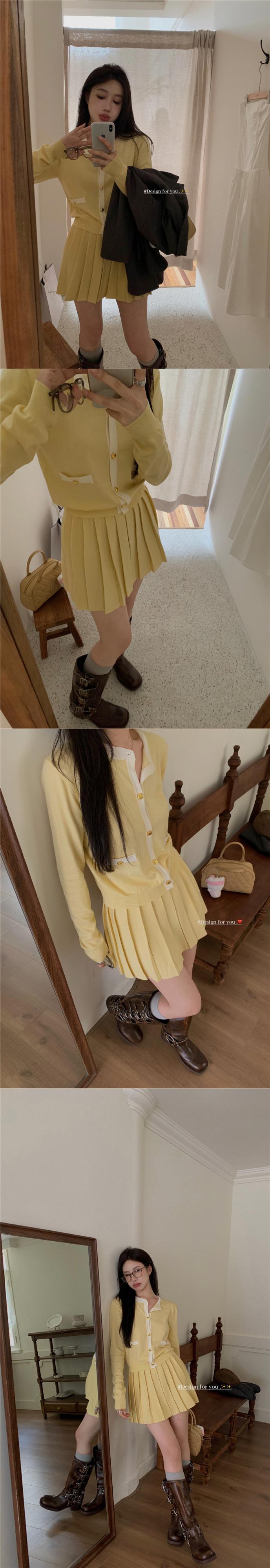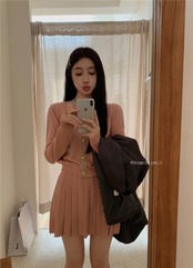 スタイル通勤スーツ秋スリムニットカーディガンプリーツミニスカート 2 点セット服 オータム 秋物