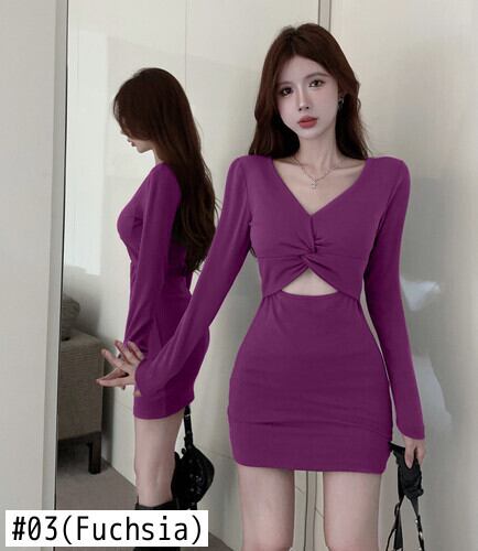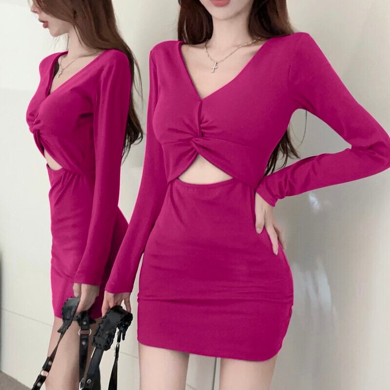 甘いホットガールセクシー V ネック中空アウト長袖ドレス秋スリムフィットラップヒップショートドレス服 ロング 大人ガーリー スウィート キュート カジュアル オータム 秋物 Vネック