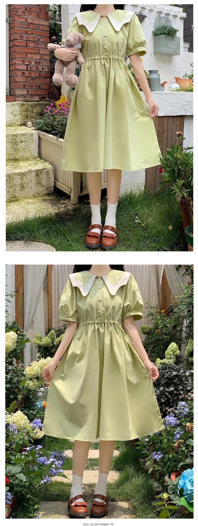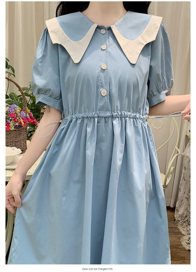 コントラストカラードールネックドレスレディースウエストフレンチスリムフィットスリムAラインドレス