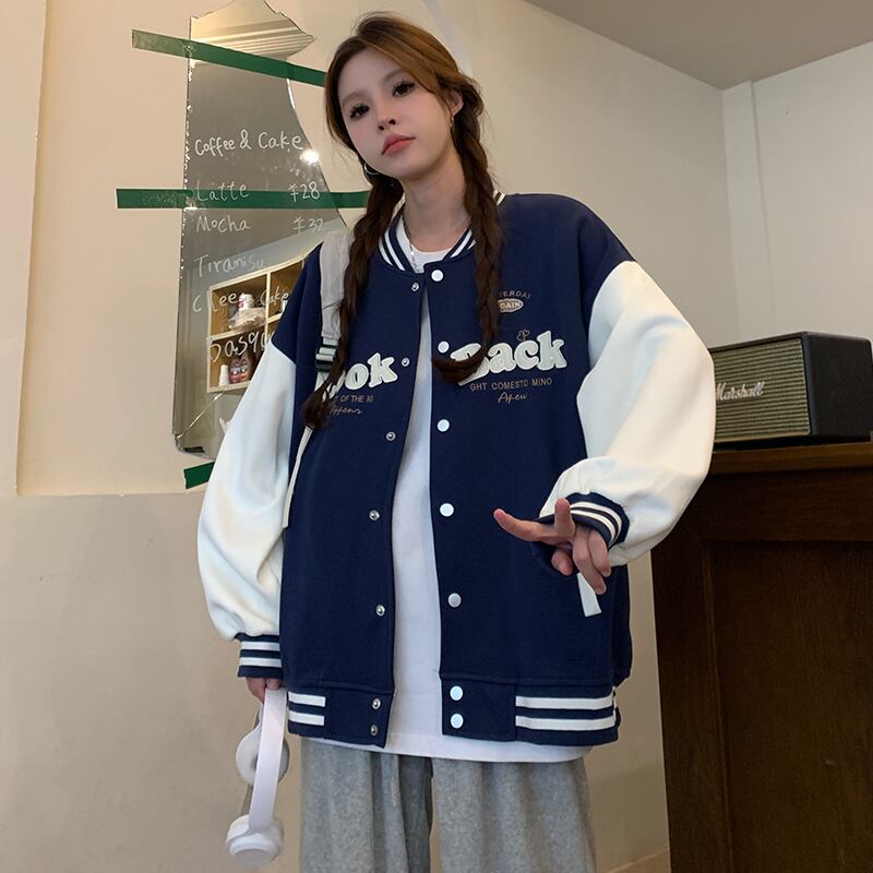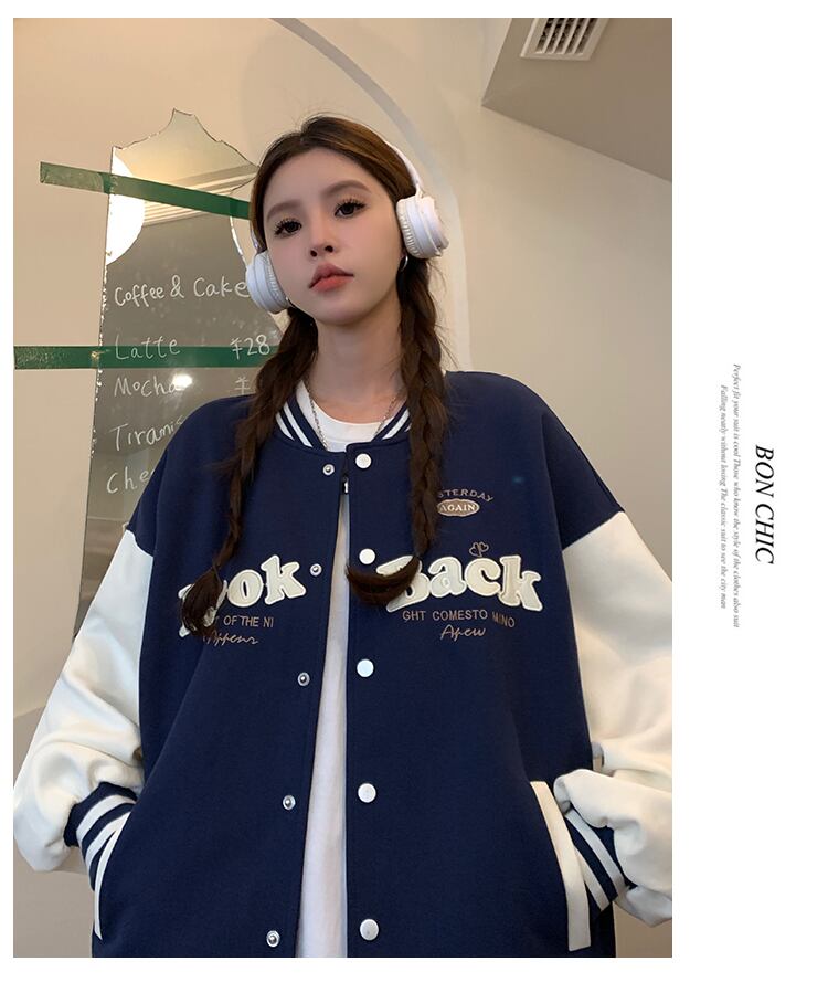 Sweet Girl ベースボールコート レディース 春と秋 立ち襟 ルーズ 長袖 刺繍 ジャケット 服 ロング 大人ガーリー スウィート キュート カジュアル スプリング 春物 オータム 秋物