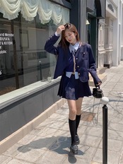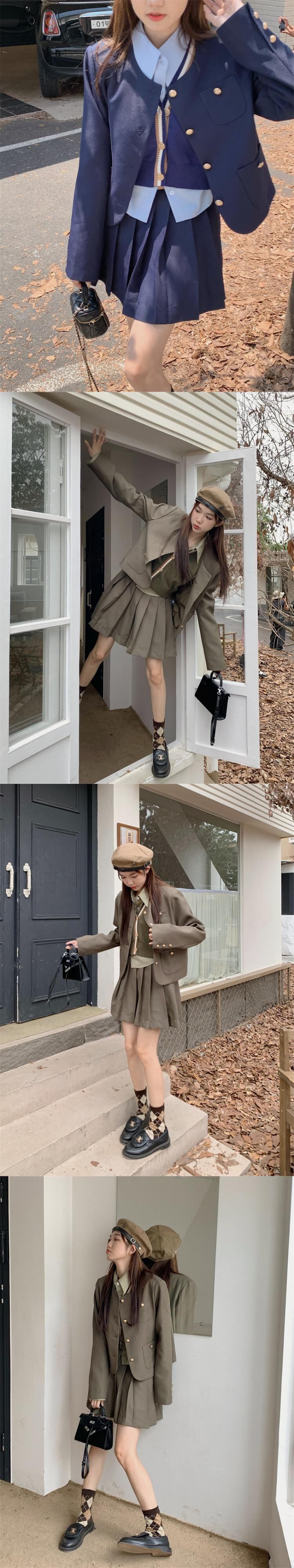 スタイルスーツ レディース 秋 長袖 ジャケット ルーズフィット シャツ Vネック ニットベスト プリーツ ミニスカート 4点セット ロング オータム 秋物