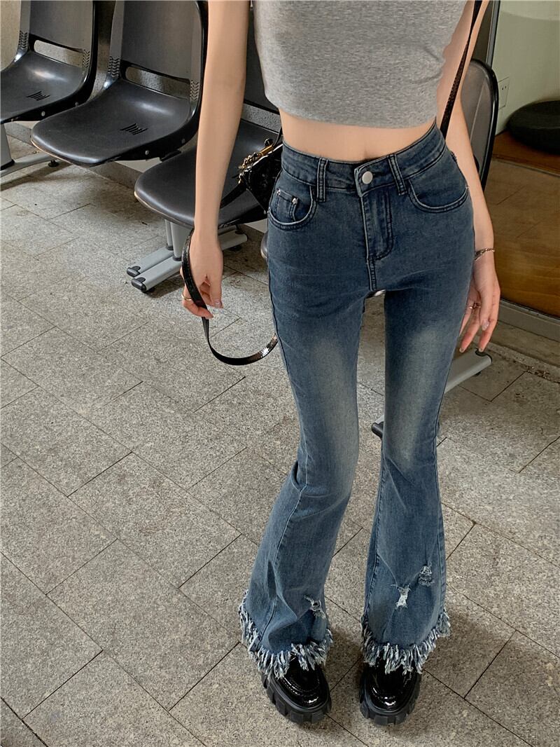 レトロ不規則ウエストジーンズレディースサマージーンズ多用途スタイルスリムフィットパンツ 夏物