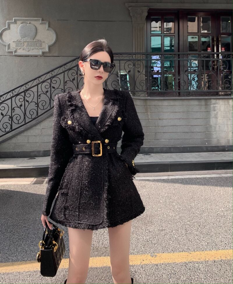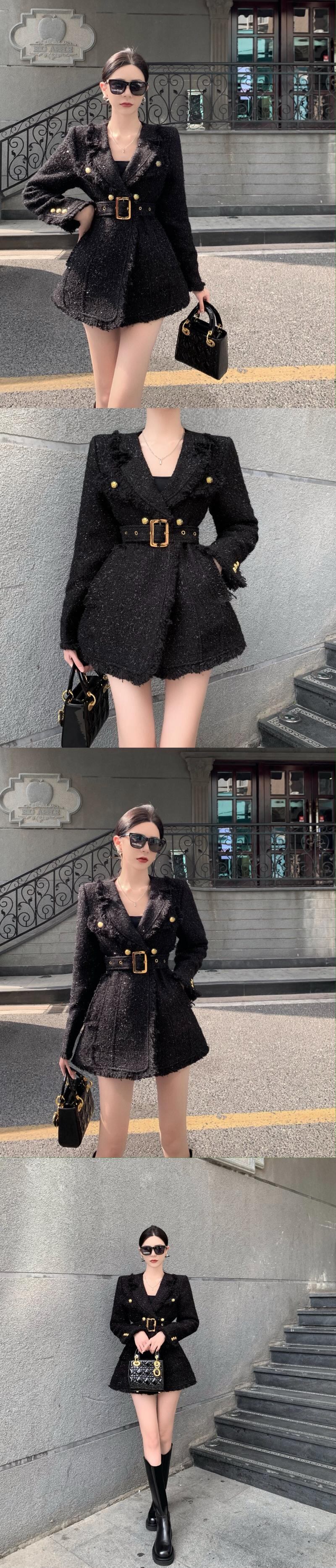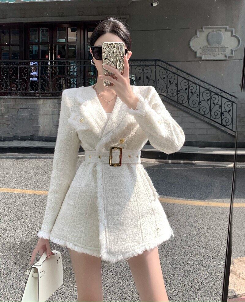 オフィスレディ明るいコットンジャケットドレス秋ウールジャケットベルトレースアップスリムウエストトップ服 オータム 秋物 ハーネス シルク 会社 学校 通勤や通学にも