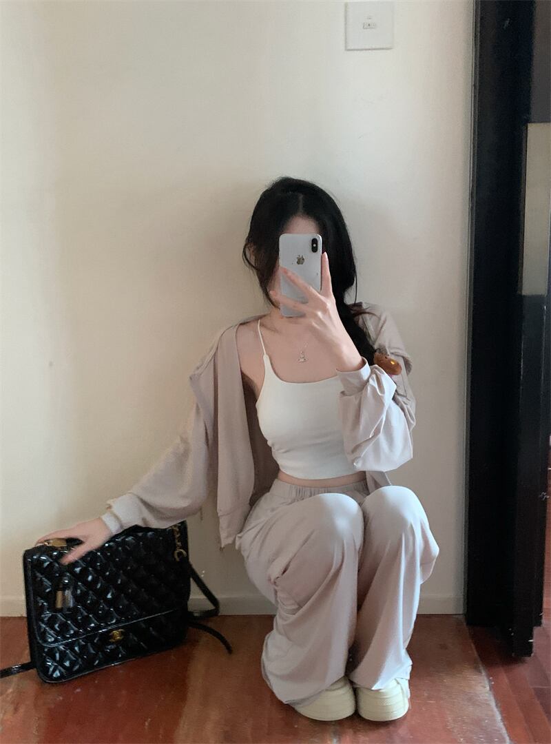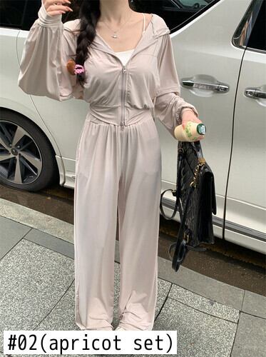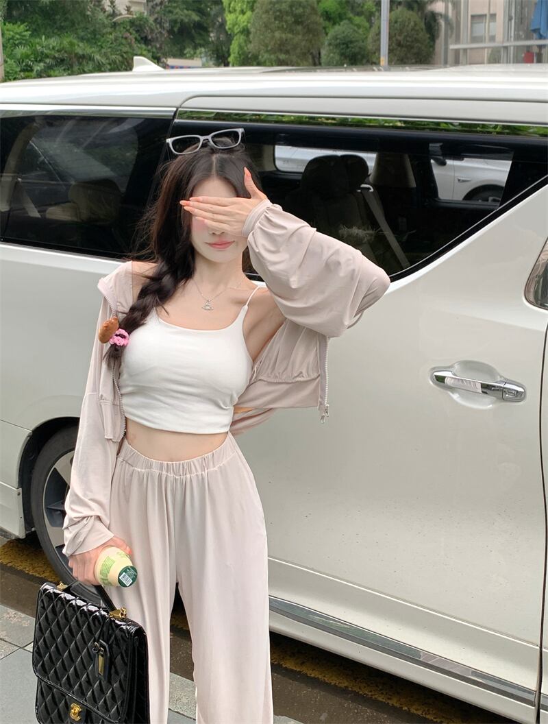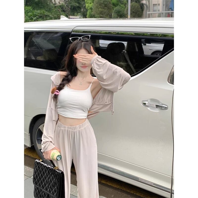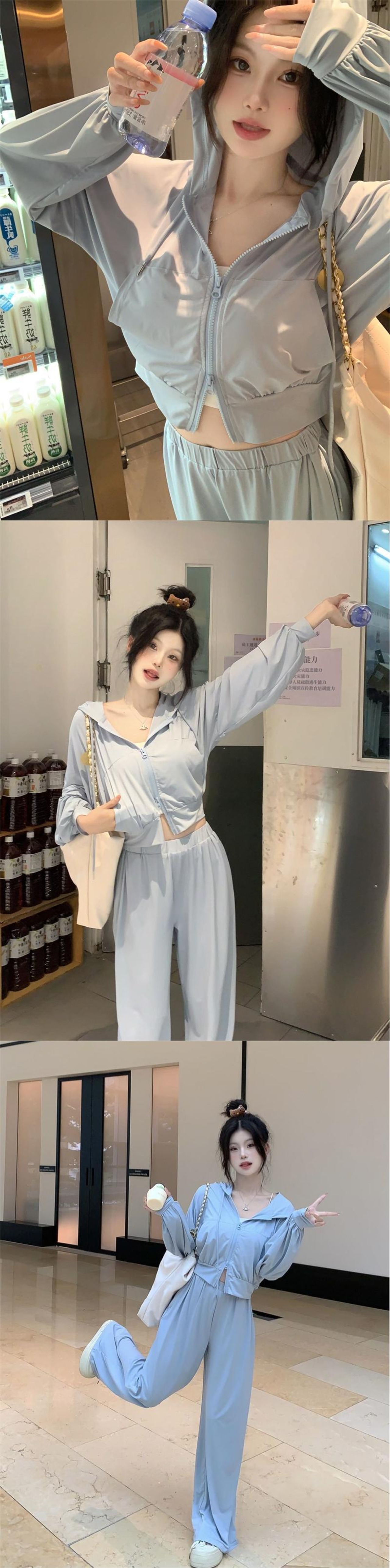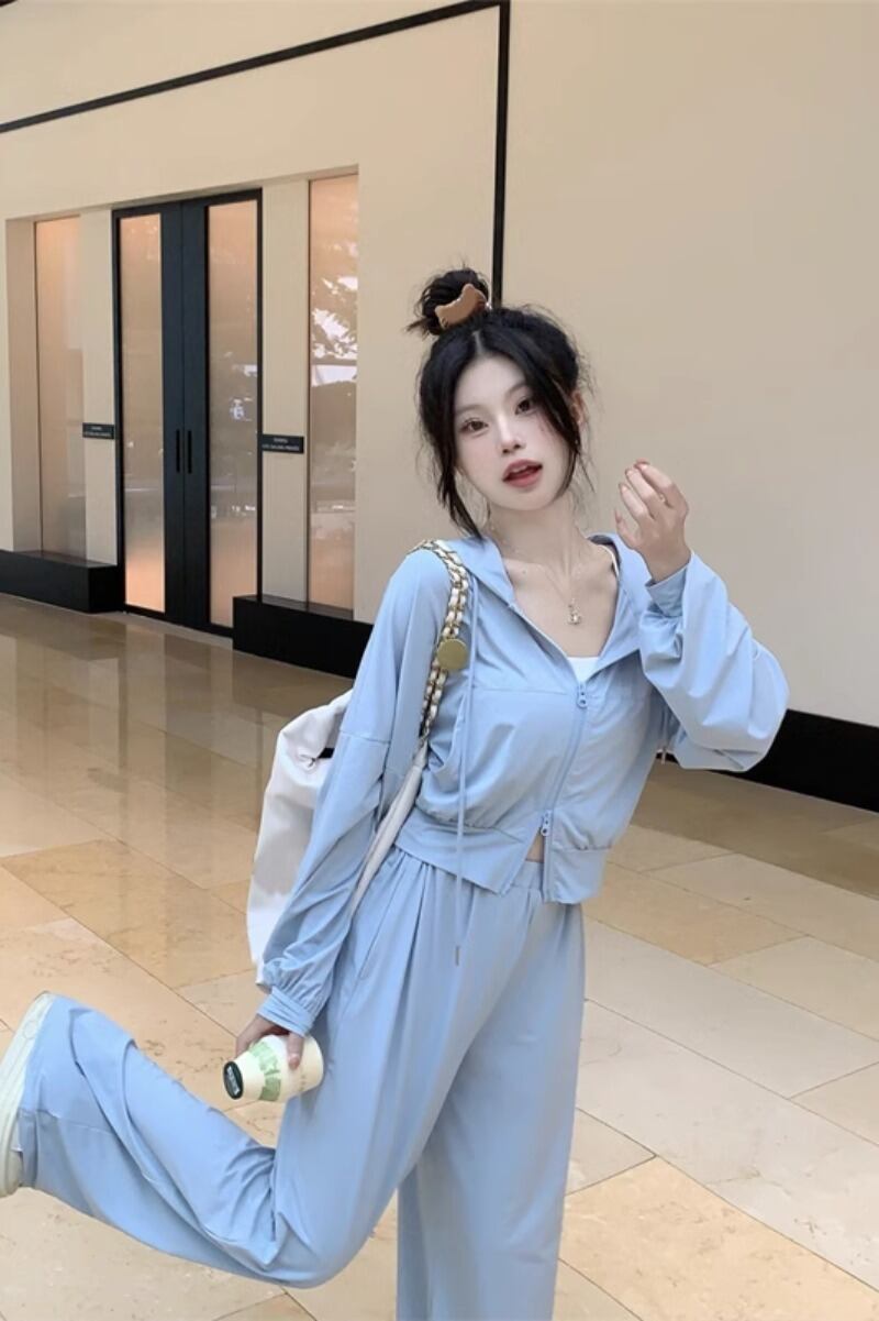 スイートホットガールスーツサマーパーカー薄い長袖トップスリムフィットロングパンツツーピースセット服 大人ガーリー スウィート キュート カジュアル 夏物