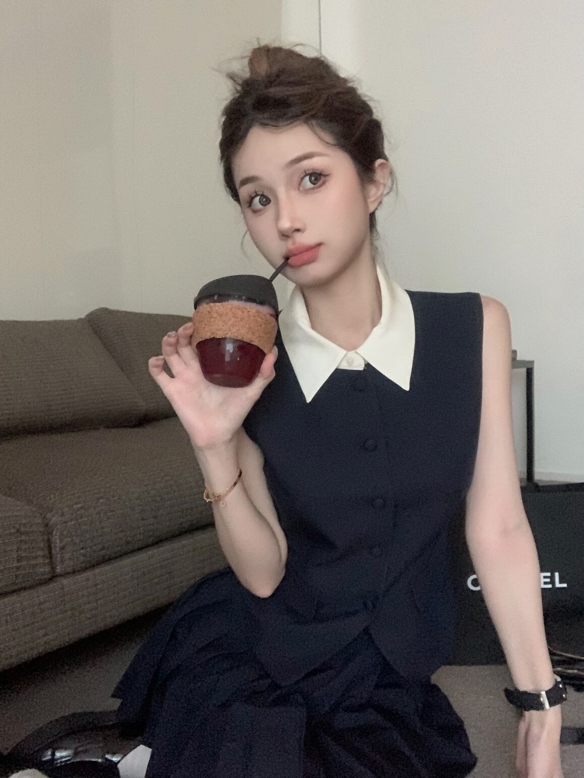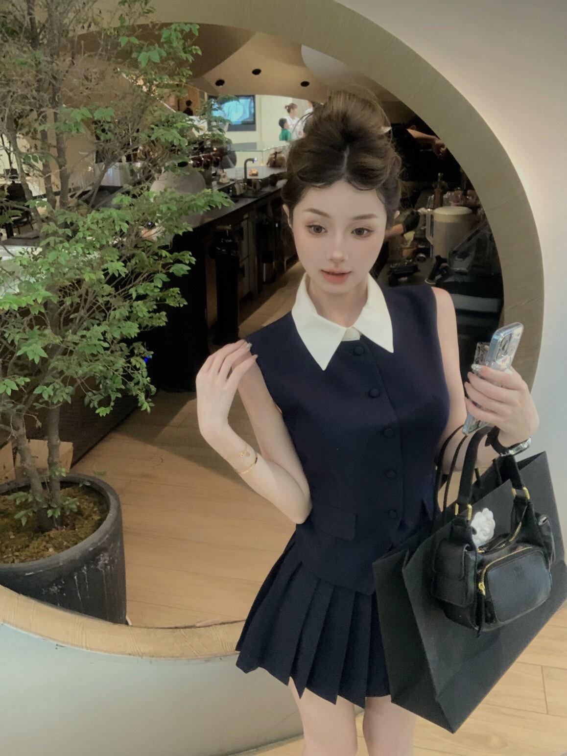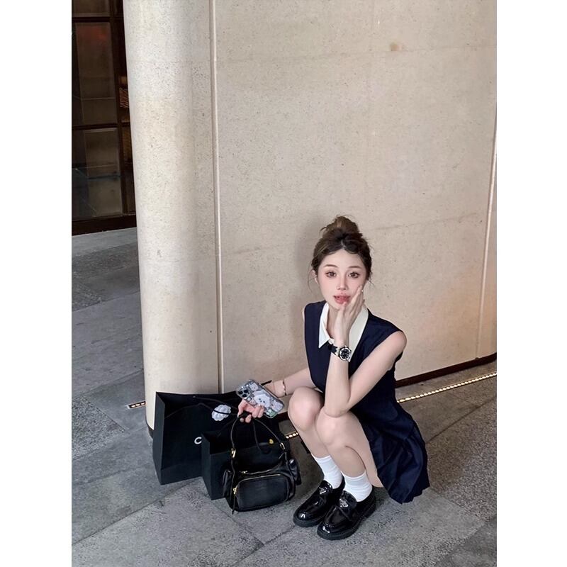 Sweet Girl 通勤スーツ レディース 夏ターンダウンカラー ノースリーブ トップ プリーツ ショート スカート 2 点セット服 大人ガーリー スウィート キュート カジュアル サマー 夏物