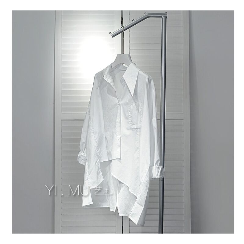 ホットガールスプリットバック長袖不規則シャツ春と秋薄手ルーズ多目的トップ服 ロング スプリング 春物 オータム 秋物