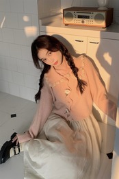 Sweet Girl 3D フラワーセーター初秋中空アウトレースピーターパン襟ニットカーディガントップ服 大人ガーリー スウィート キュート カジュアル オータム 秋物 フラワーデザイン
