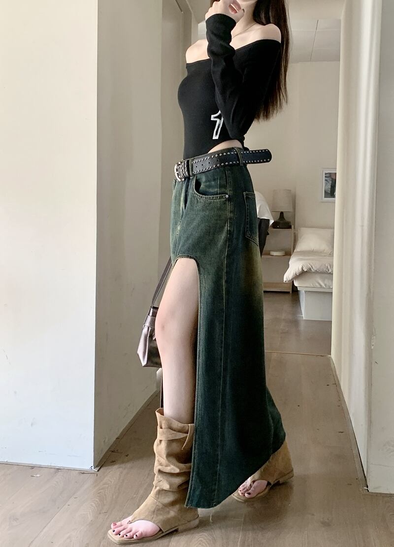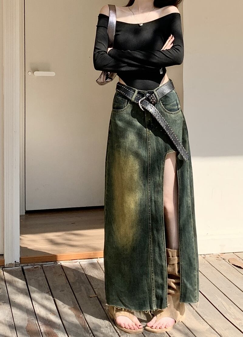 サウスサマー ウエストミモレ丈 5分丈スカート レディース センス大股開き ウォッシュドデニムスカート 夏物