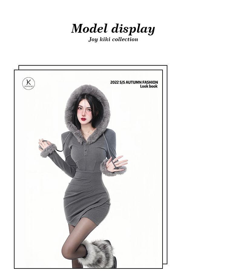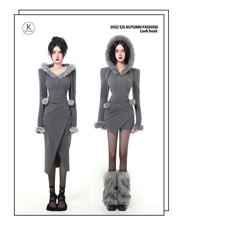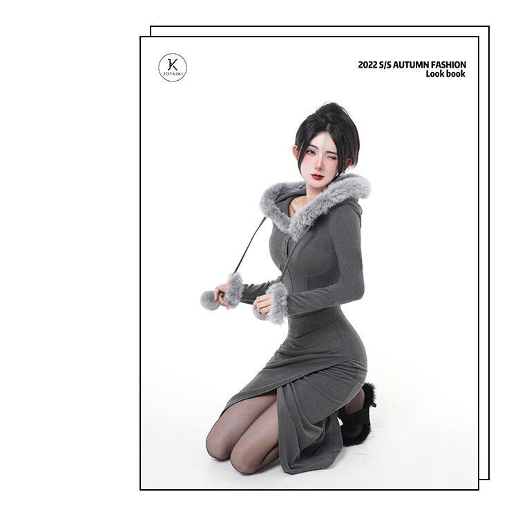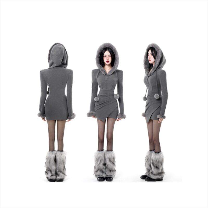 ホットガール純粋セクシーソフトフード付きラップヒップドレス秋と冬長袖スリムフィットショートドレス服 ロング オータム 秋物 ウィンター 冬物 ピュア