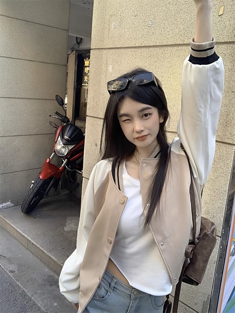 ホットガール ese 野球コート秋多用途ルーズでシンプルシングルブレストジャケット服 オータム 秋物