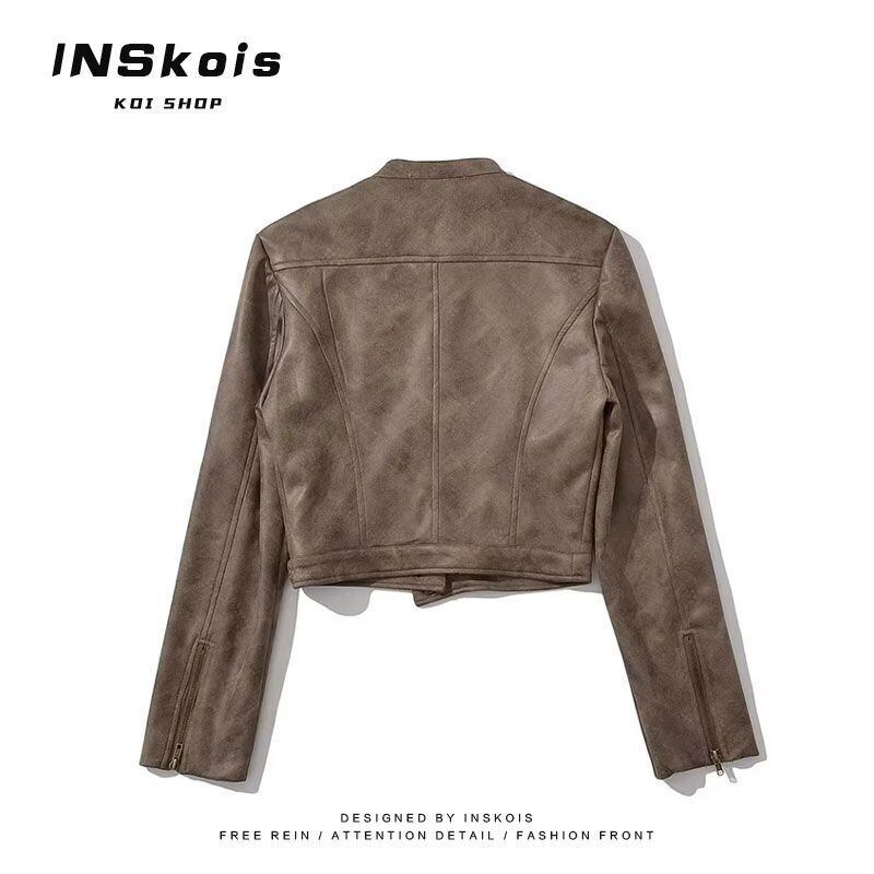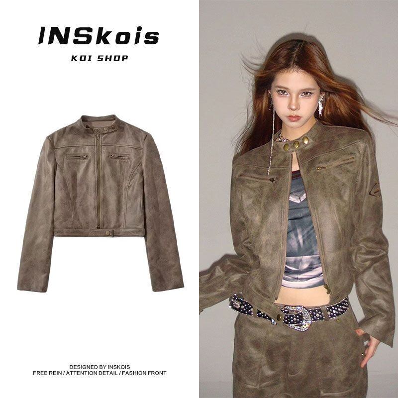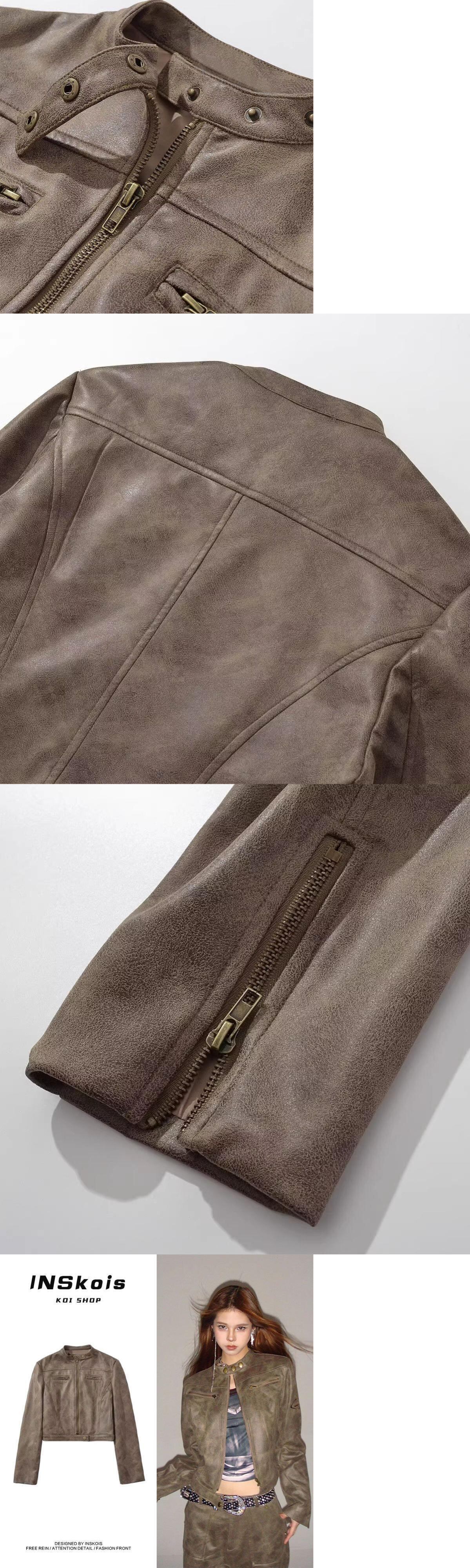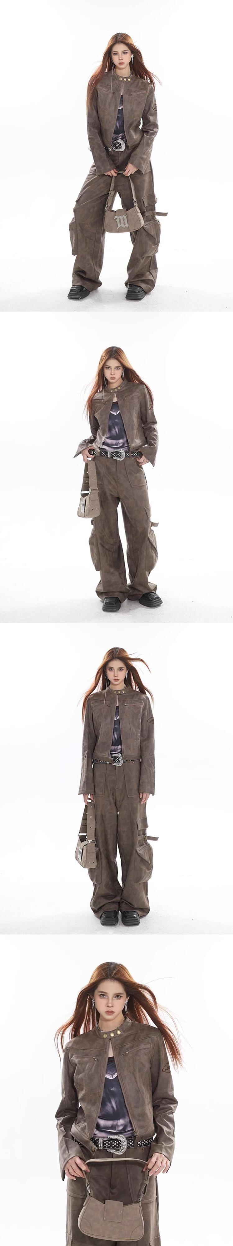 アメリカンレトロオートバイジッパーコート春と秋スエード立ち襟ジャケット服 スウェード スプリング 春物 オータム 秋物