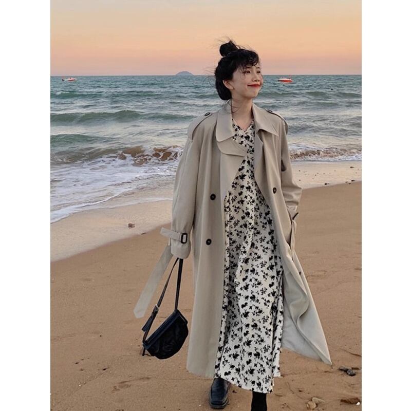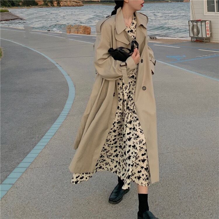 フレンチスタイルオフィスレディスーツ秋レトロ花柄ドレスルーズウインドブレーカーロングコートツーピースセット服 オータム 秋物 会社 学校 通勤や通学にも