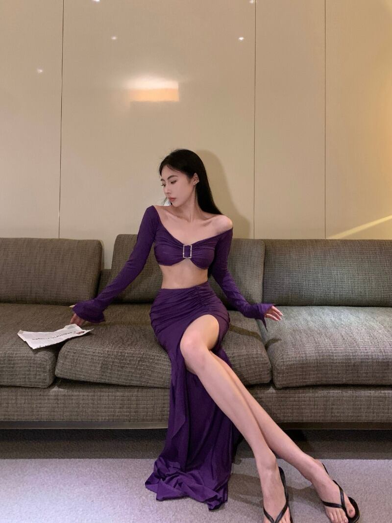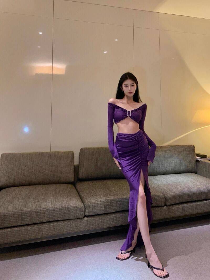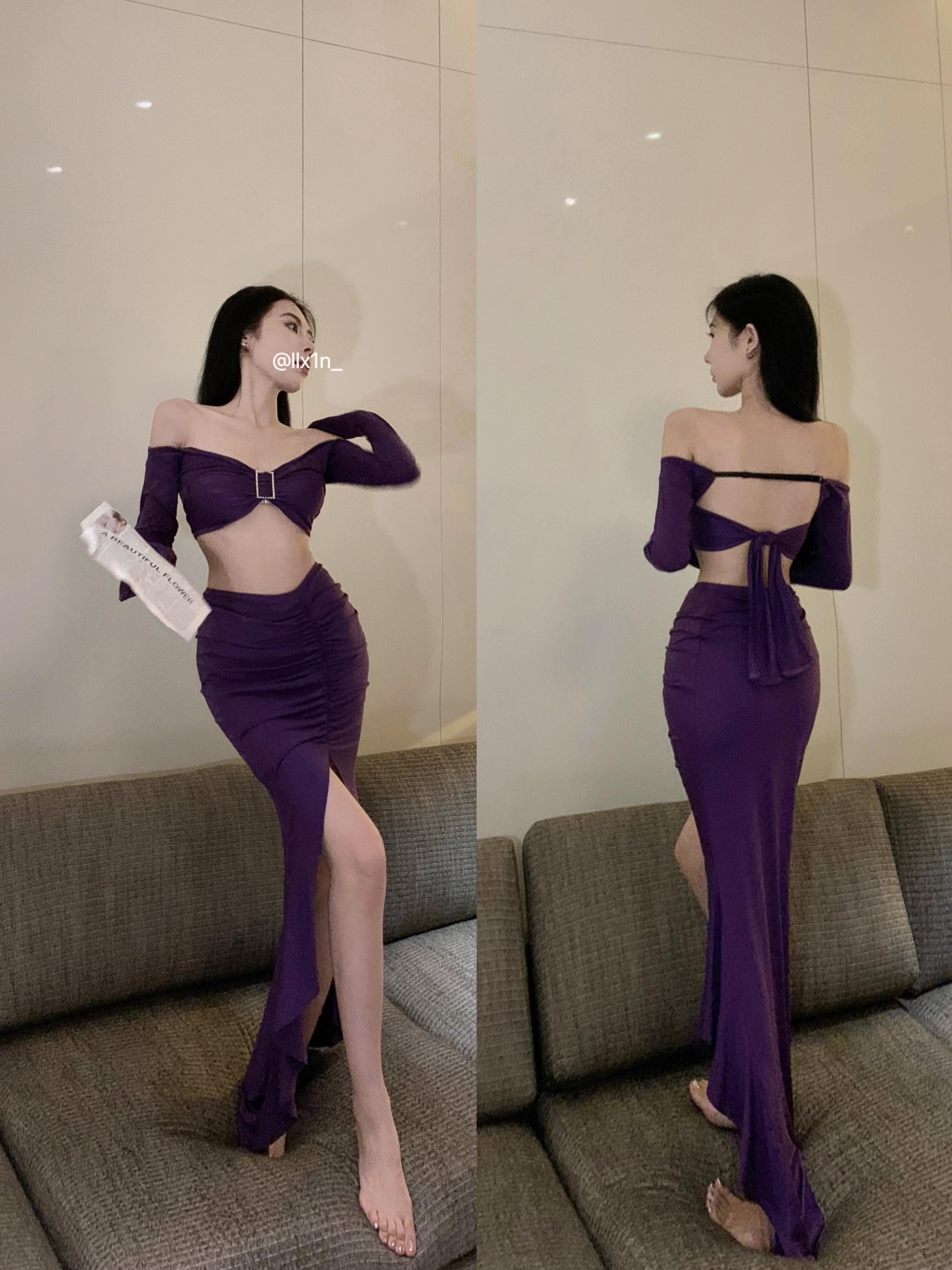 アメリカンセクシーホットガールスーツ夏スラッシュネックレースアップスリムフィットトップマーメイドスプリットスカートツーピースセット服 サマー 夏物