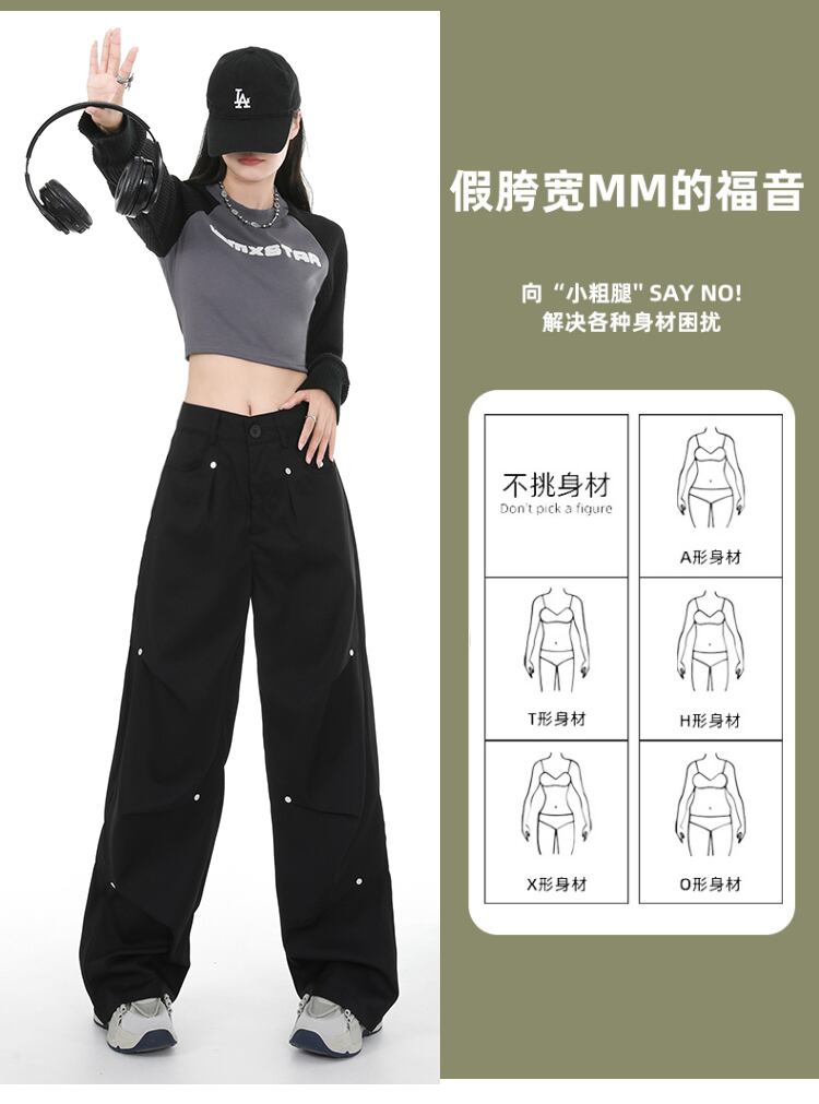 アメリカンレトロスタイルローウエストパンツ秋ワイドレッグストレートプリーツオーバーオール服 オータム 秋物 ワイドパンツ