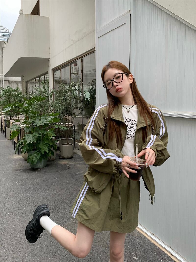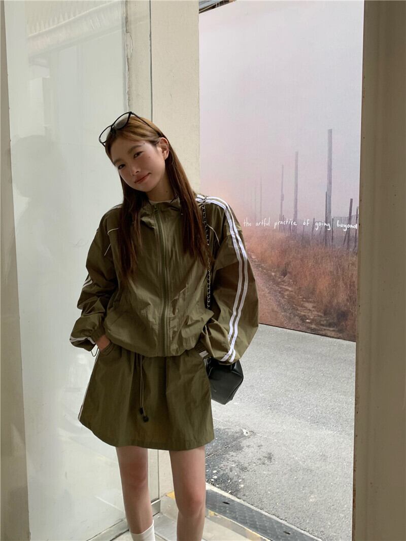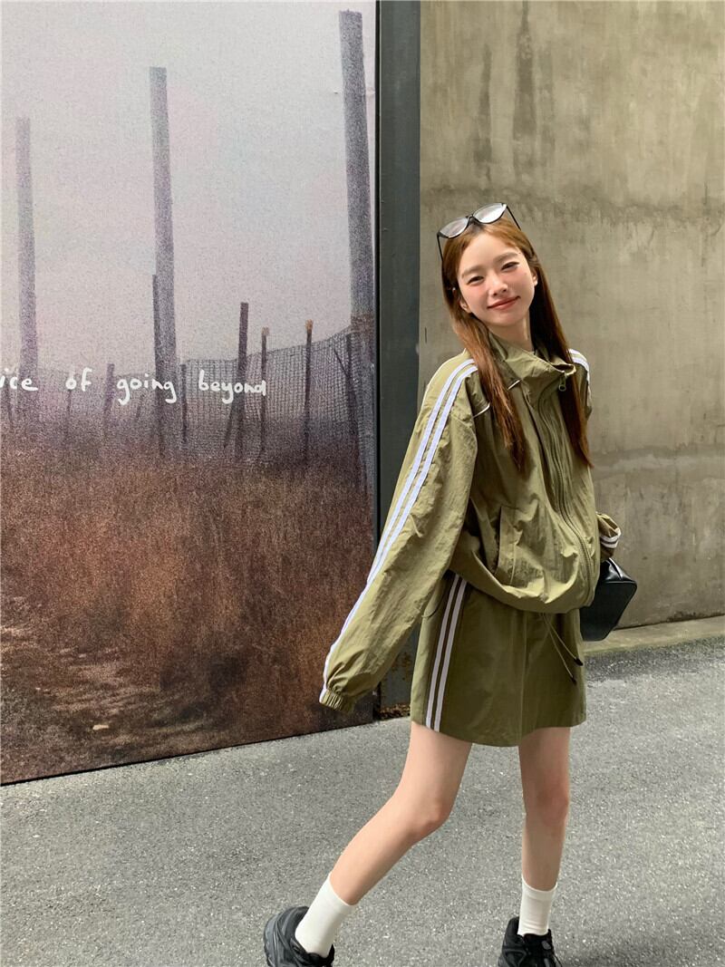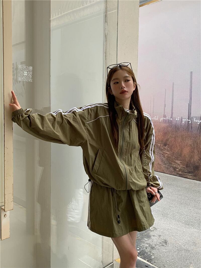 アメリカン スポーツ スーツ レディース 夏長袖スタンドカラー ジャケット ウエスト スカート 2 点セット服 ロング サマー 夏物