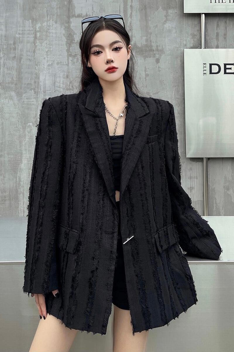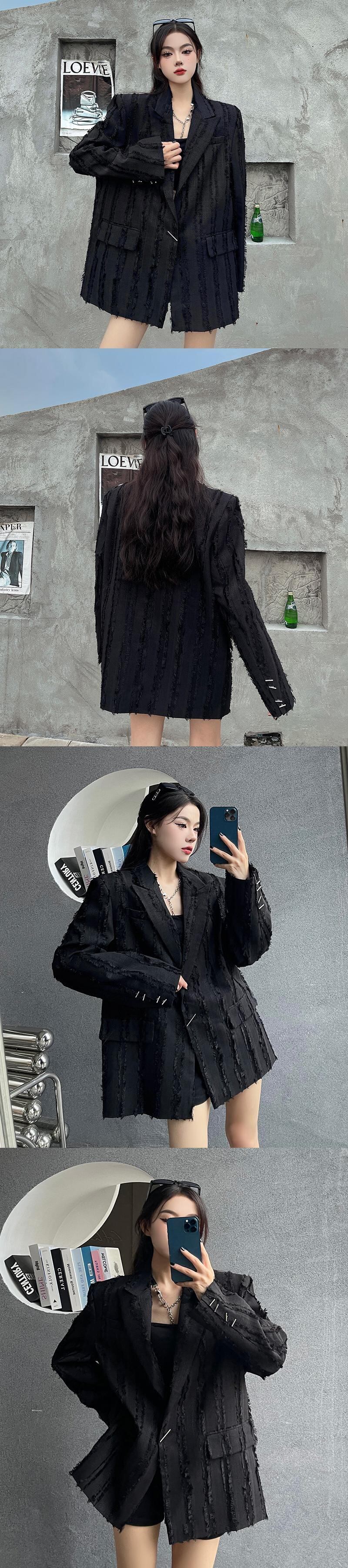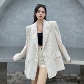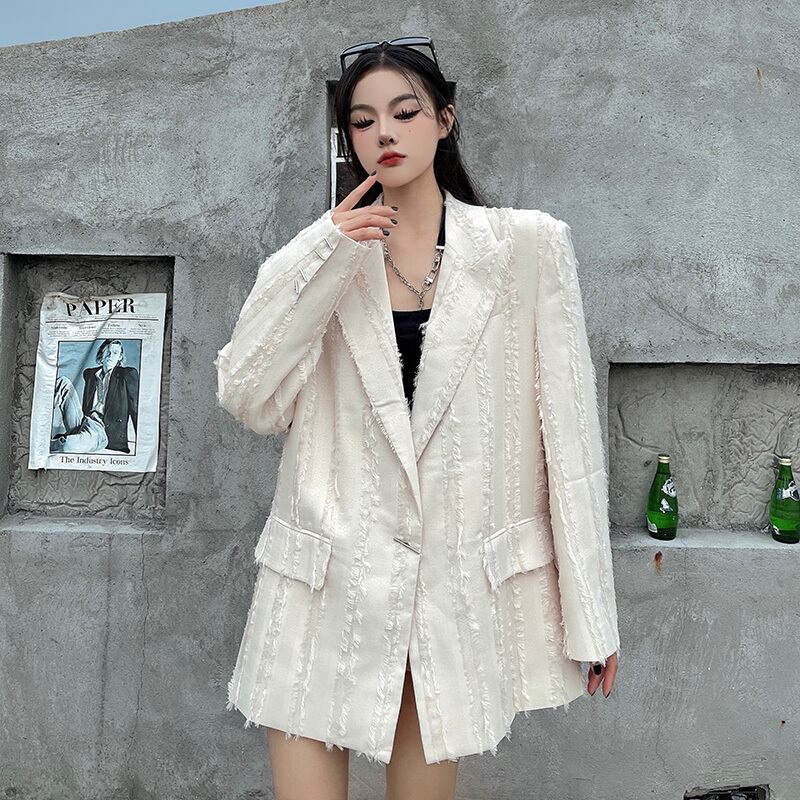 甘いホットガールスーツコート秋ルーズ長袖ルーズターンダウン襟ミッドレングスジャケットトップ服 ロング 大人ガーリー スウィート キュート カジュアル オータム 秋物